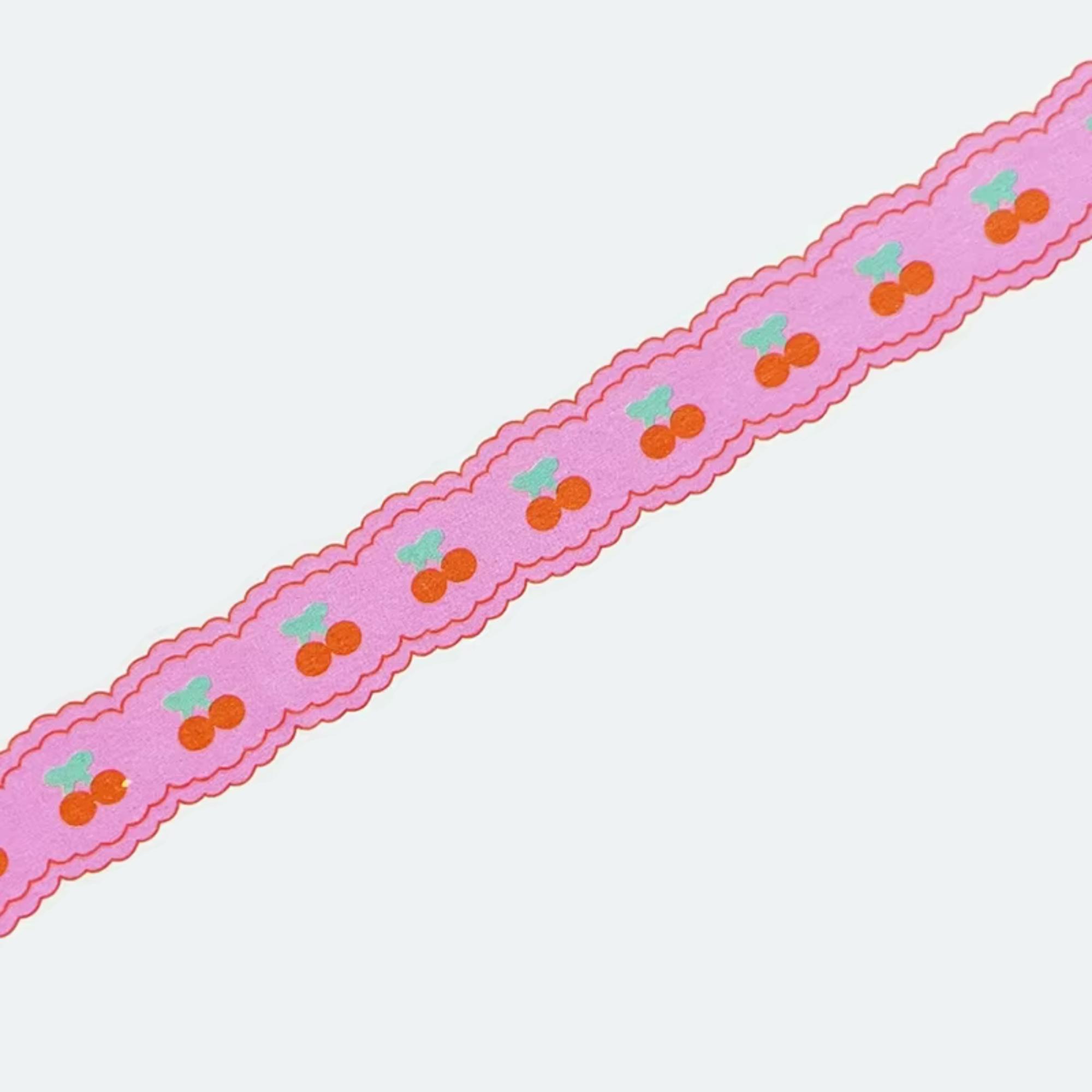 Scalloped Edge Cherries Washi Tape (Pink) – Cherry motifs on a scalloped edge background in pink hues: playful, feminine, and perfect for adding a decorative trim to your favorite items.