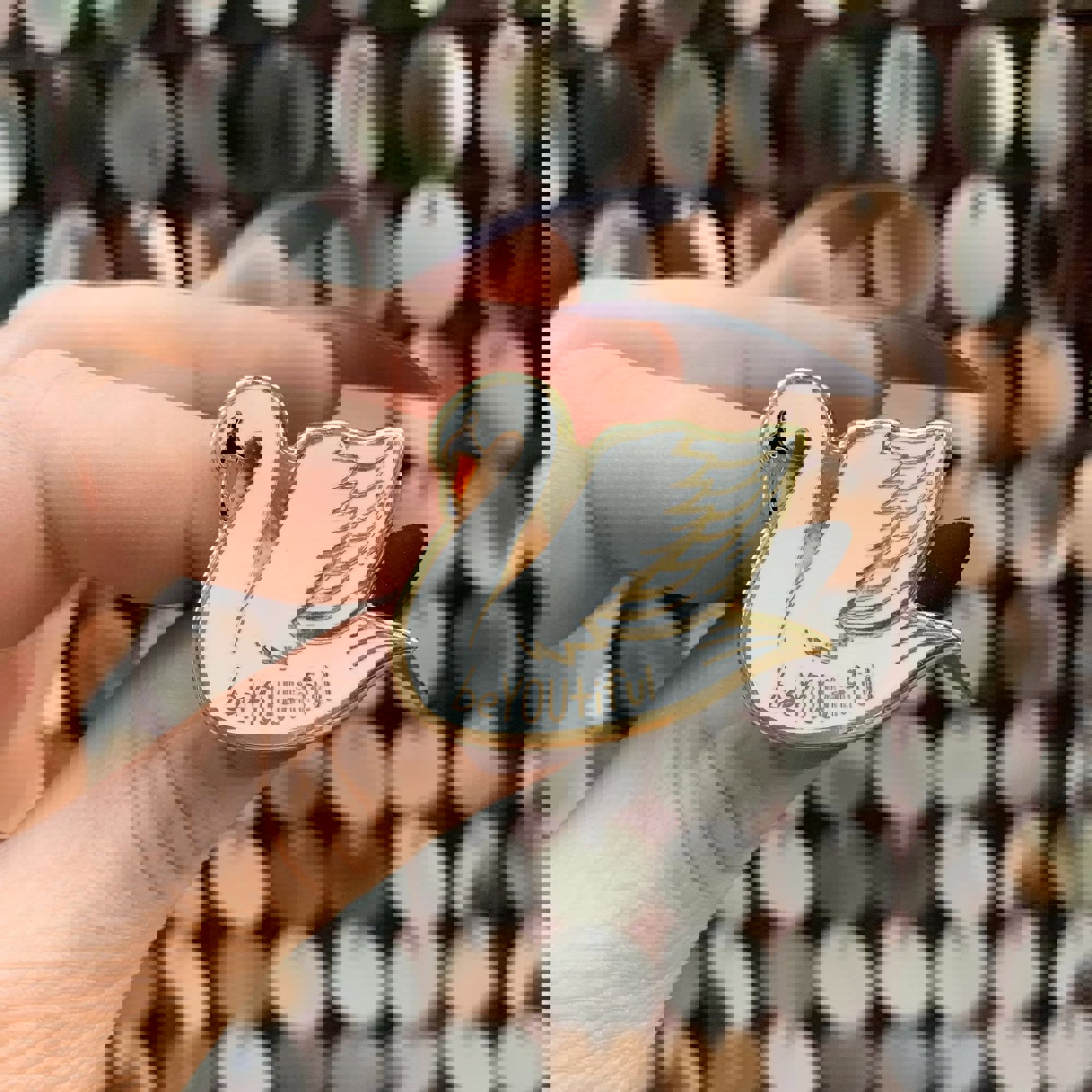 Add a touch of elegance to your outfit with the Swan Enamel Pin in White and Gold.