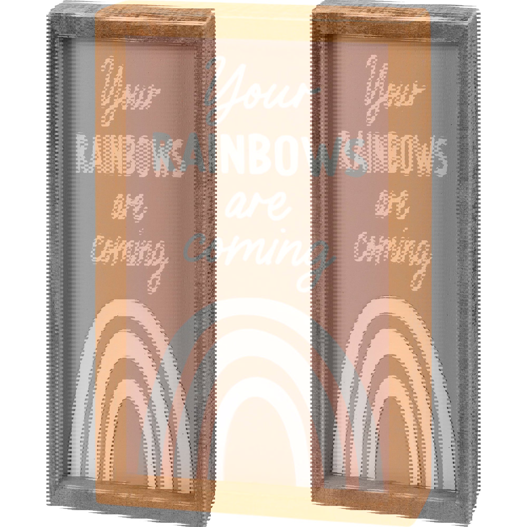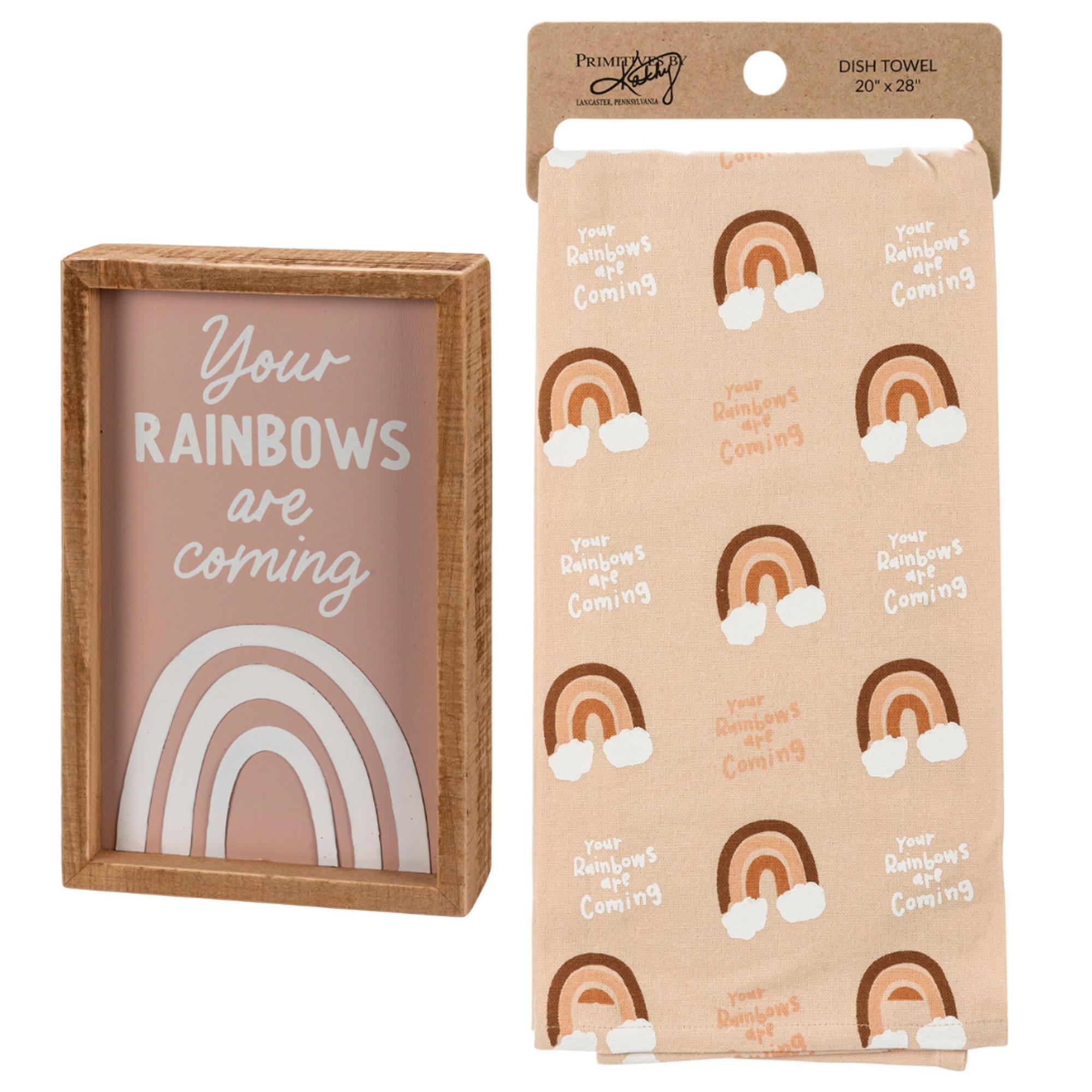 Your Rainbows Are Coming Inspirational Gift | Decor Sign and Tea Towel Bundle