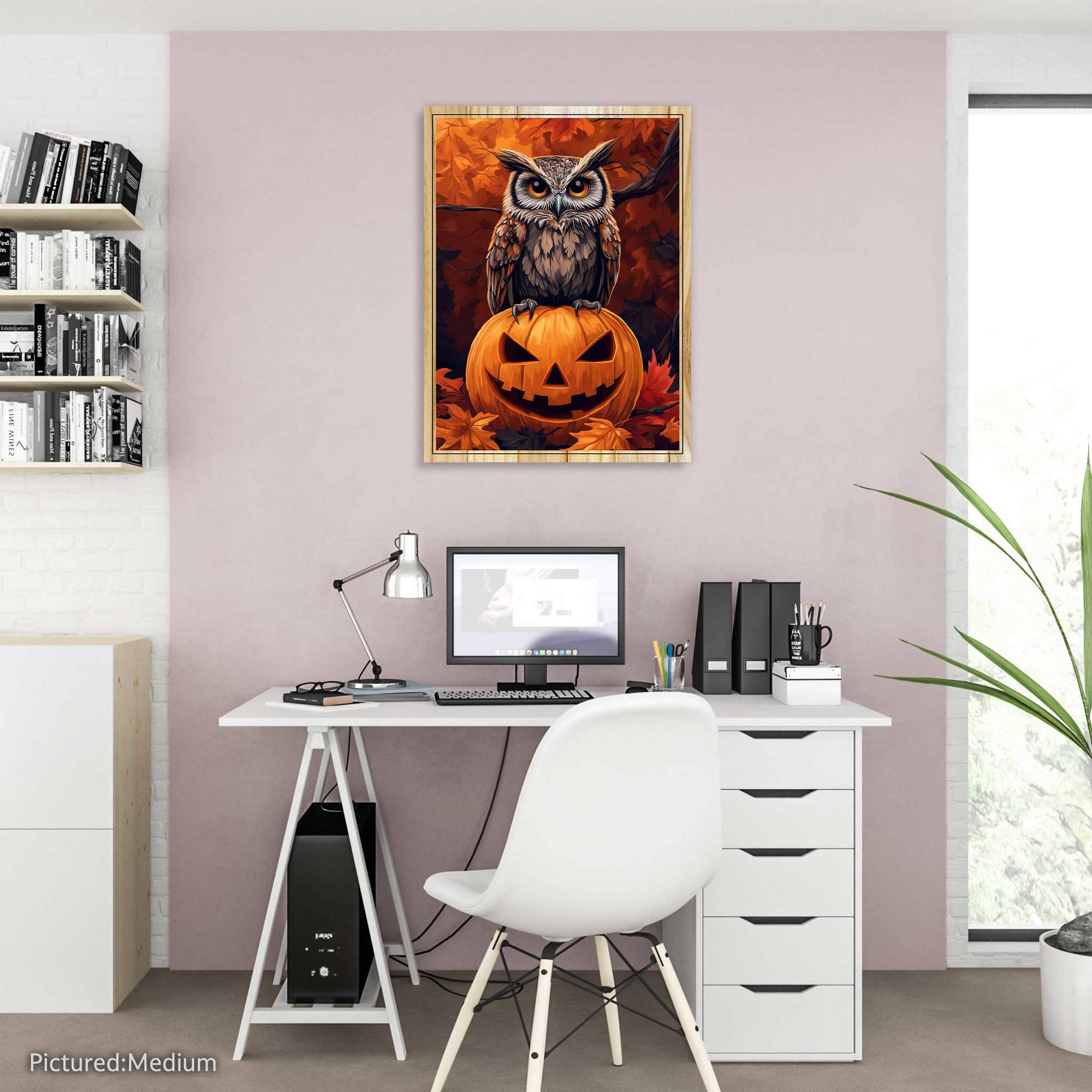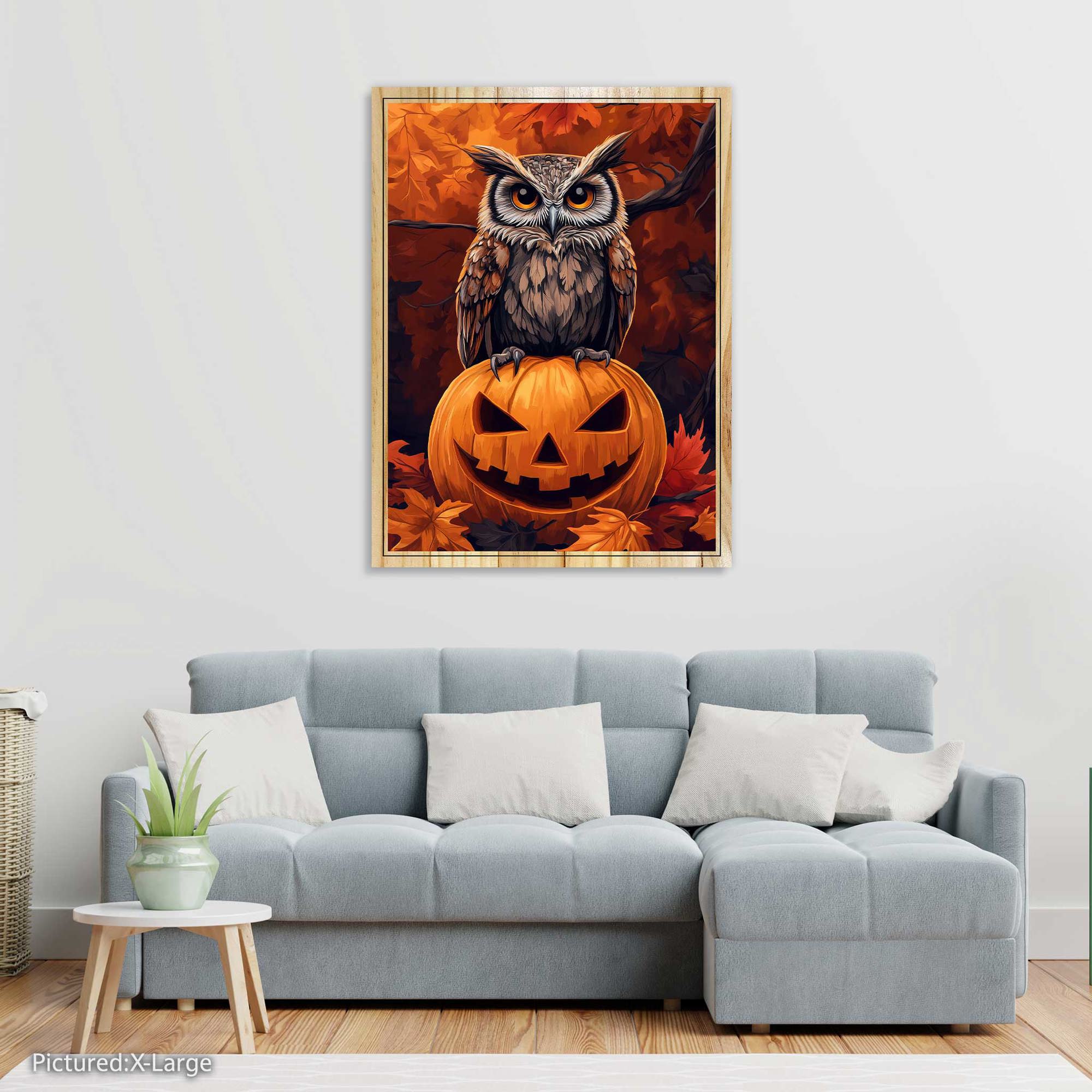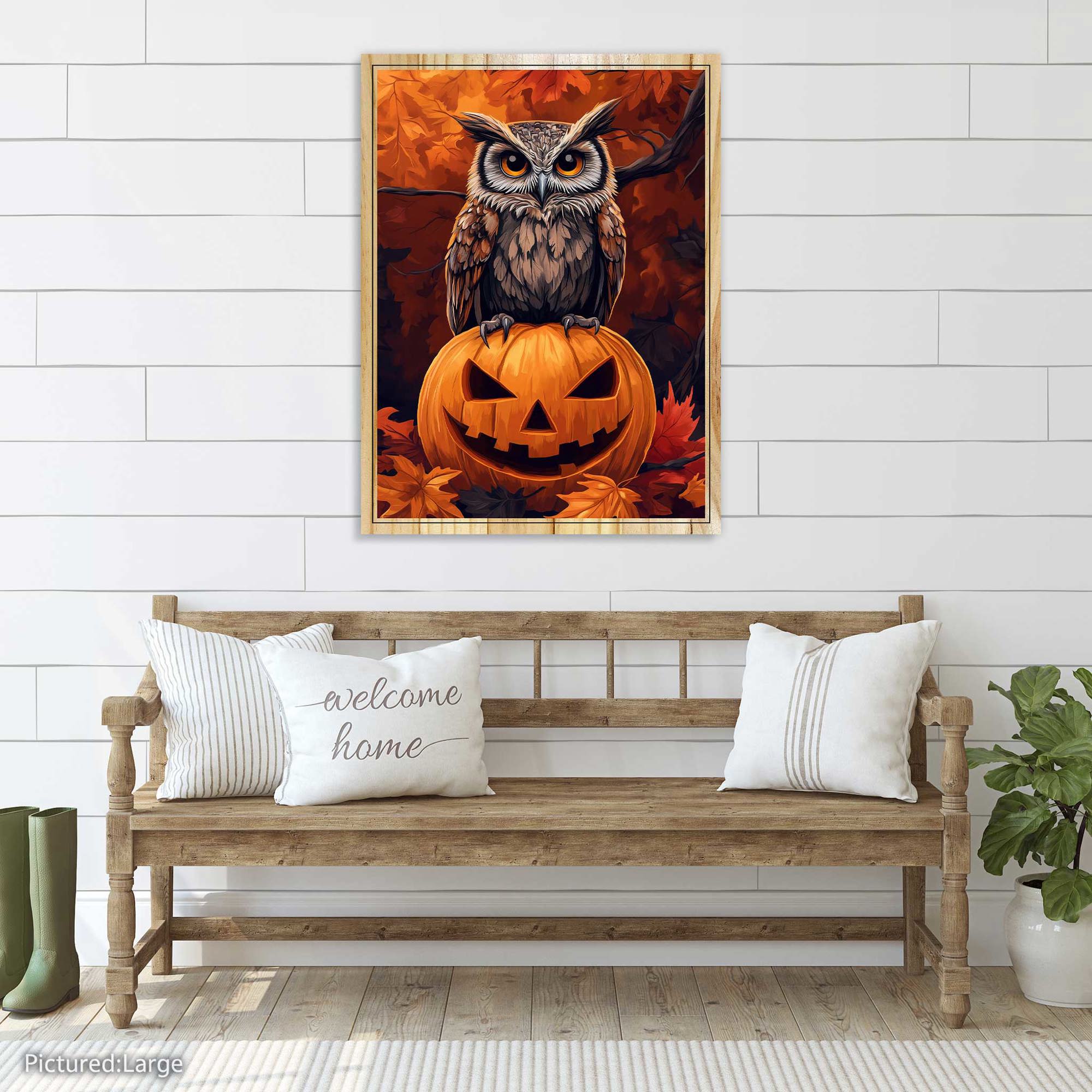Capture the spirit of Halloween with our Midnight Owl artwork, beautifully printed on premium pine wood. Cutting-edge elevated printing techniques bring the scene to life, from the piercing gaze of the owl to the glowing jack-o’-lantern resting among fiery fall leaves. Built on durable pine wood, this artwork is made to last, ensuring you can enjoy its seasonal charm year after year. Each piece undergoes strict quality inspection before leaving our workshop, giving you confidence in your purchase.