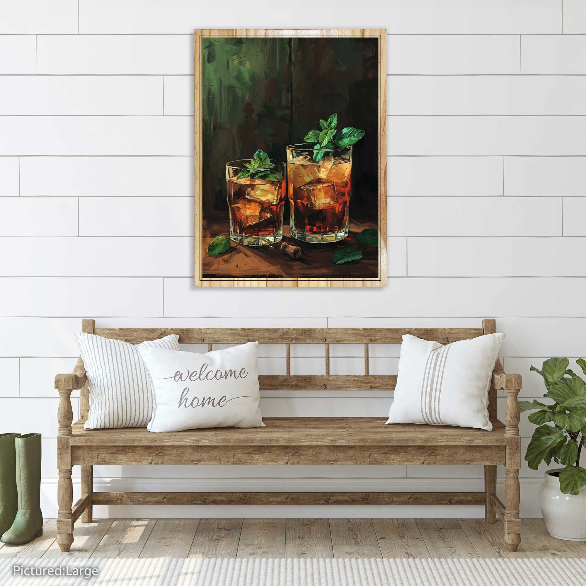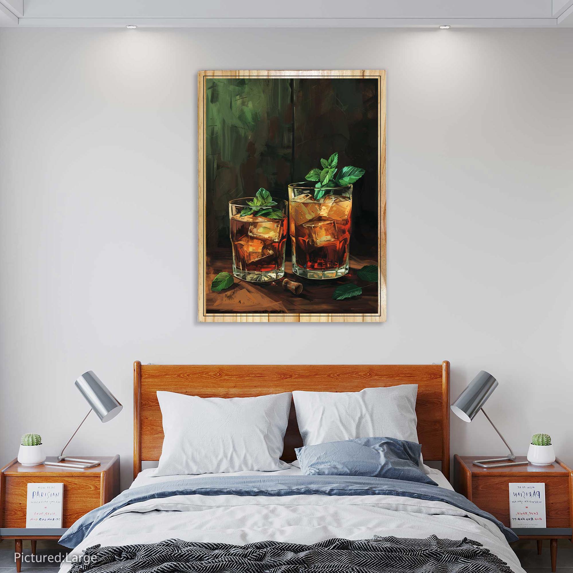 Perfect for home bars, offices, lounges, dining rooms, or modern living spaces, this artwork brings a sense of grounded elegance and relaxed luxury to any setting. Its dark, atmospheric palette and striking composition make it a powerful statement piece for bourbon enthusiasts and lovers of refined décor alike.