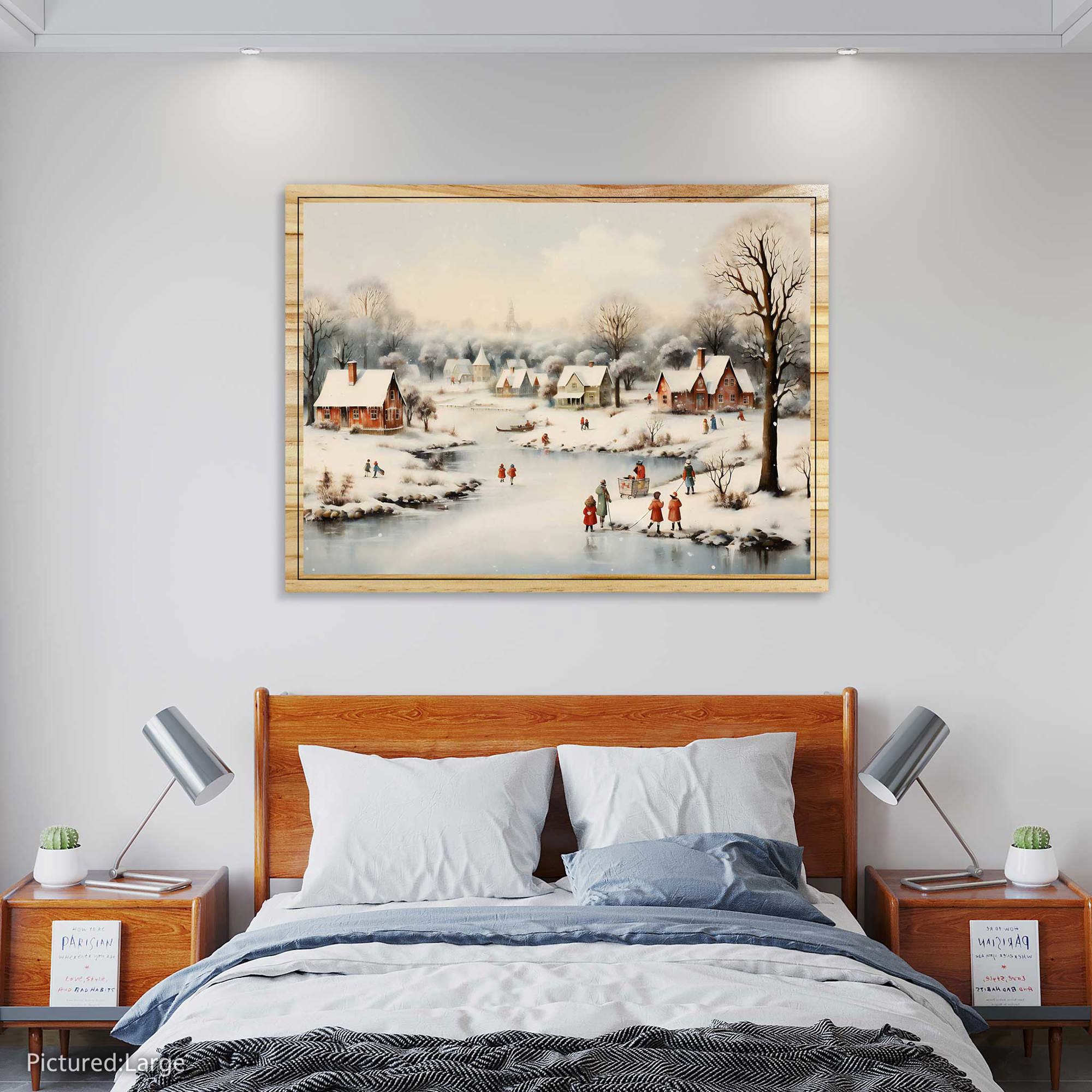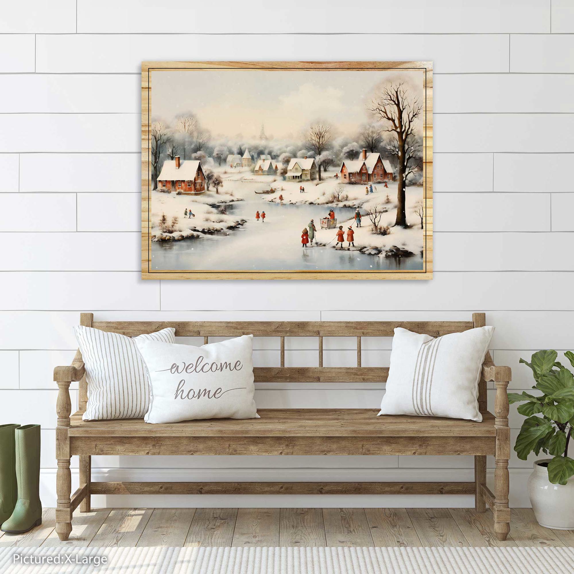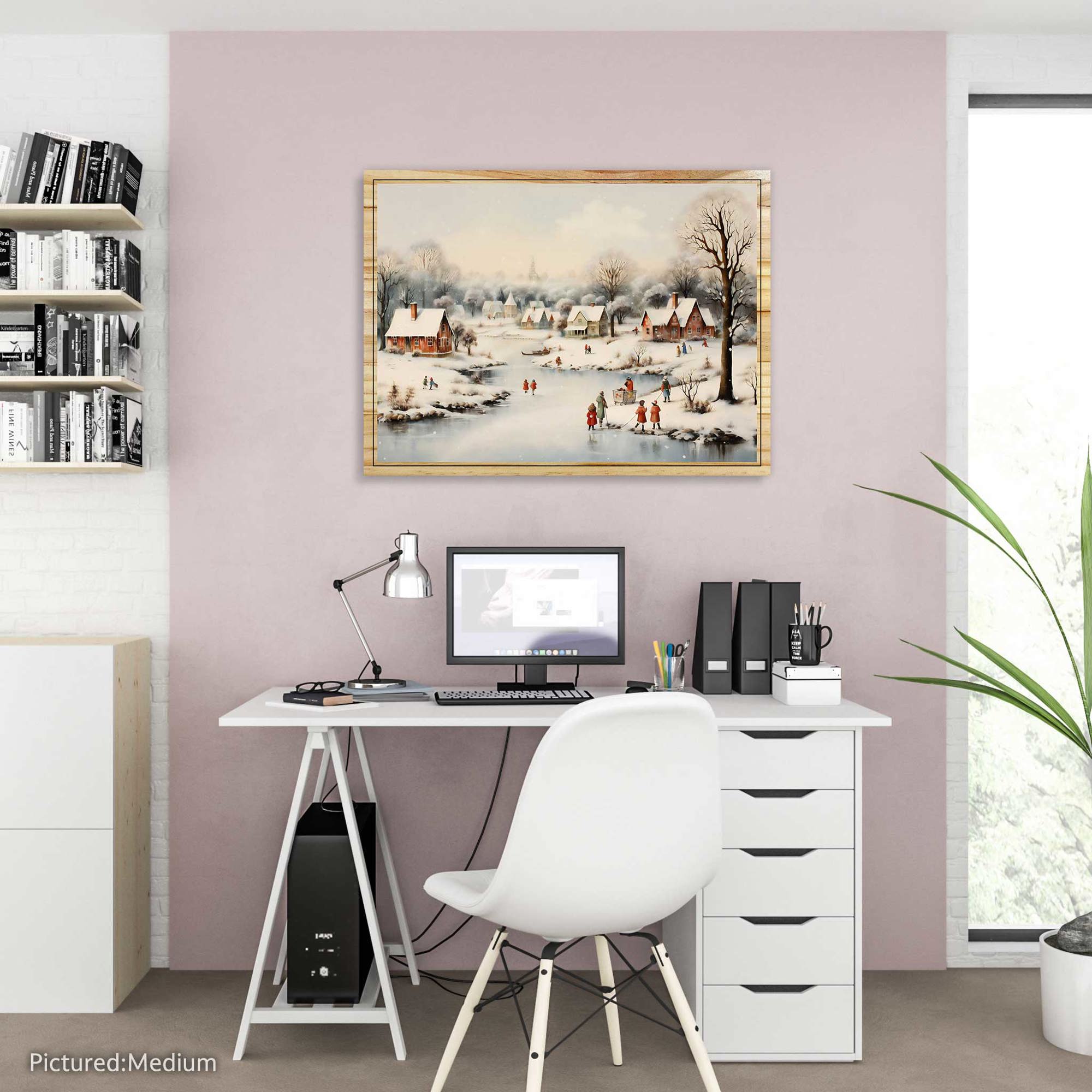 Glide into a winter wonderland with our Ice Skating Village design. Set on authentic pine wood, this artwork captures the magical essence of a snowy village brought to life by skaters. Decide between a classic flat print or a detailed elevated print to fit your decor style. Crafted with meticulous care, the high-quality pine ensures this piece stands the test of time. Experience the joy of winter festivities through an artwork that combines charm with exceptional craftsmanship.