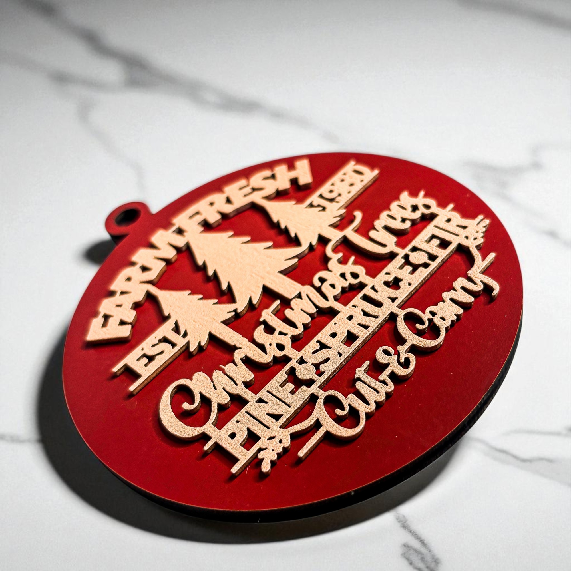🎄 Get that nostalgic, vintage vibe with our "Farm Fresh Christmas Trees" Wooden Ornament or choose another style.
