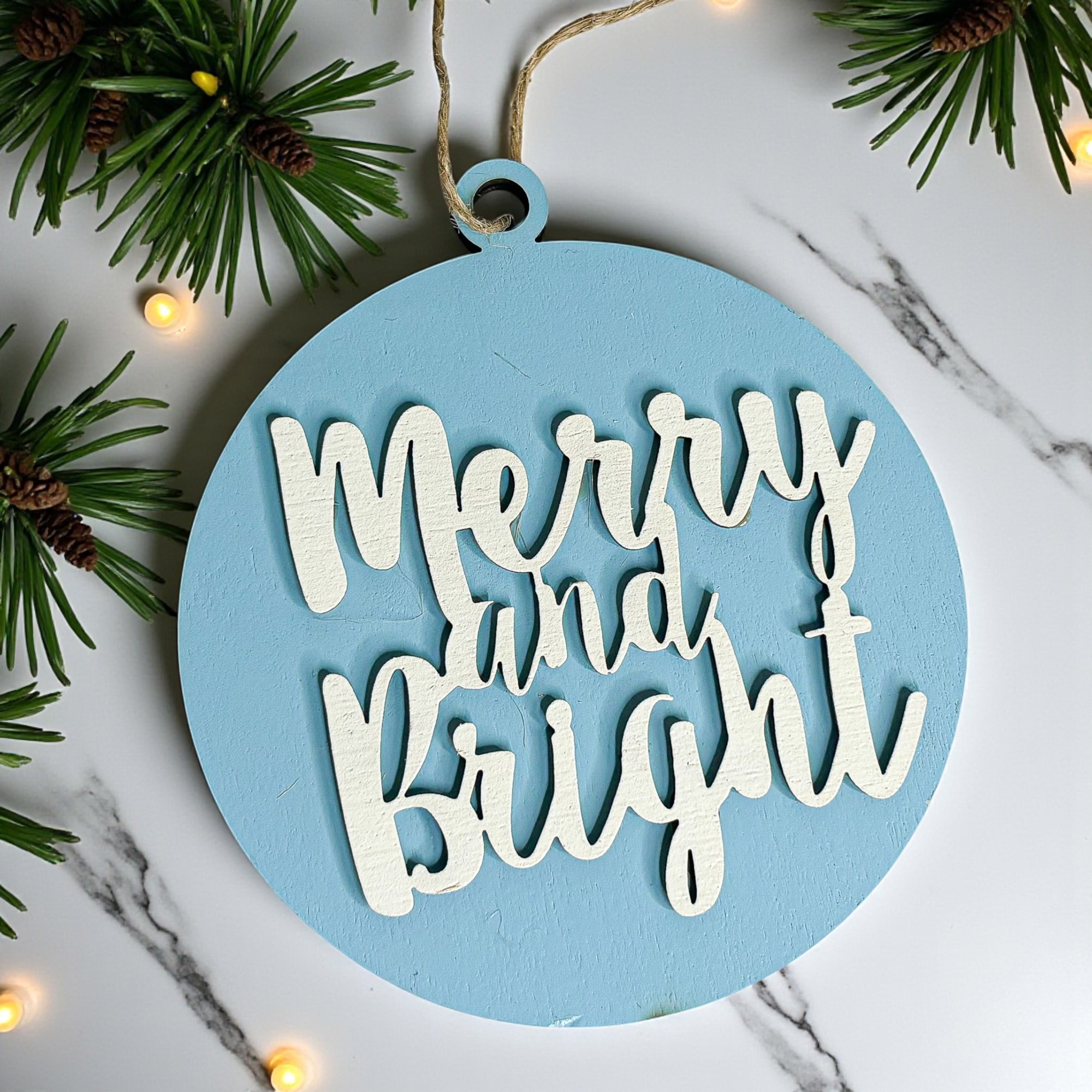 Each ornament will come with a jute string. It will NOT be tied to the ornament so you can choose your own length or use a different ribbon and add your own colorful flare to it!