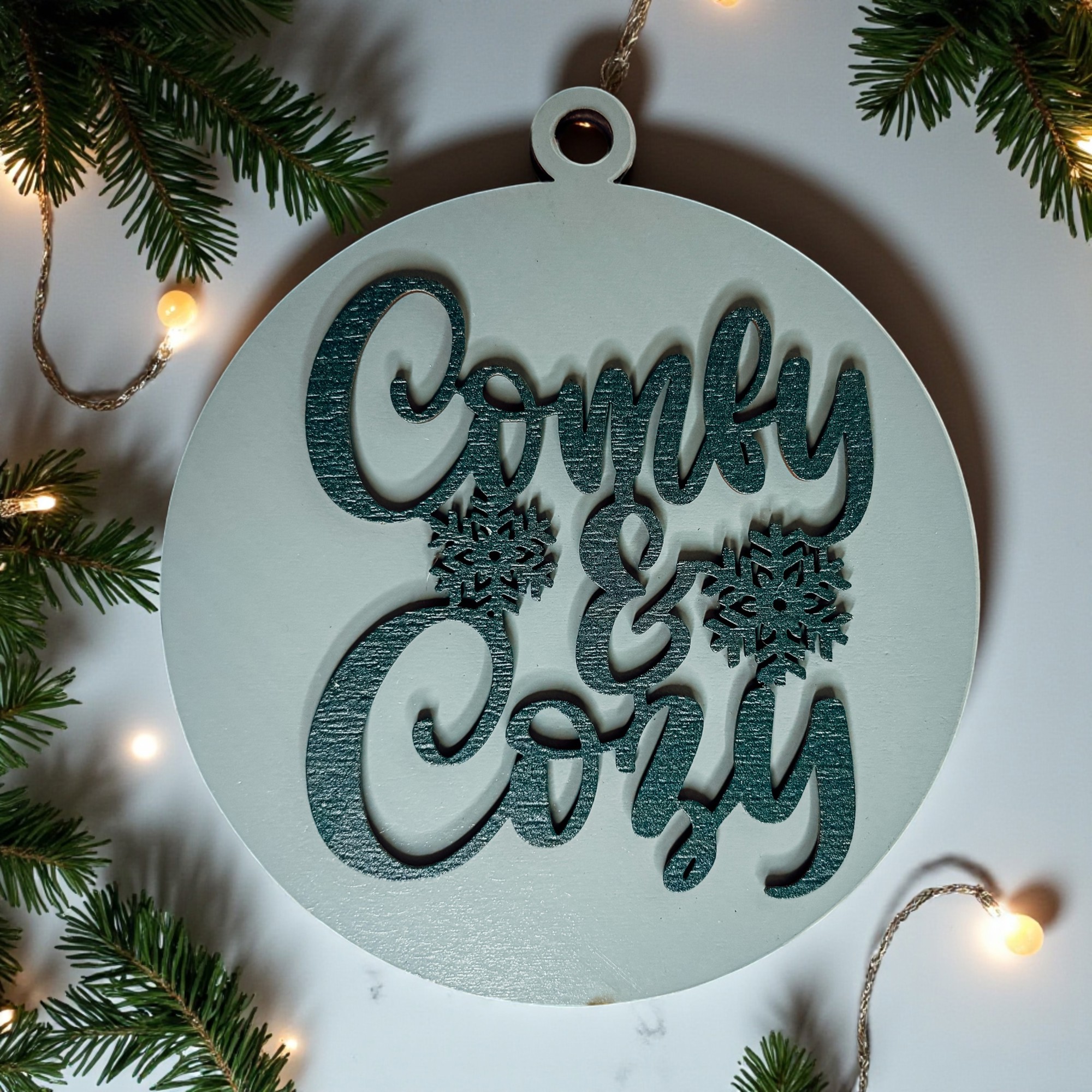 🎄 Get ready to crank up the cozy vibes with our Handmade Wooden "Comfy and Cozy" Ornaments or choose another style!