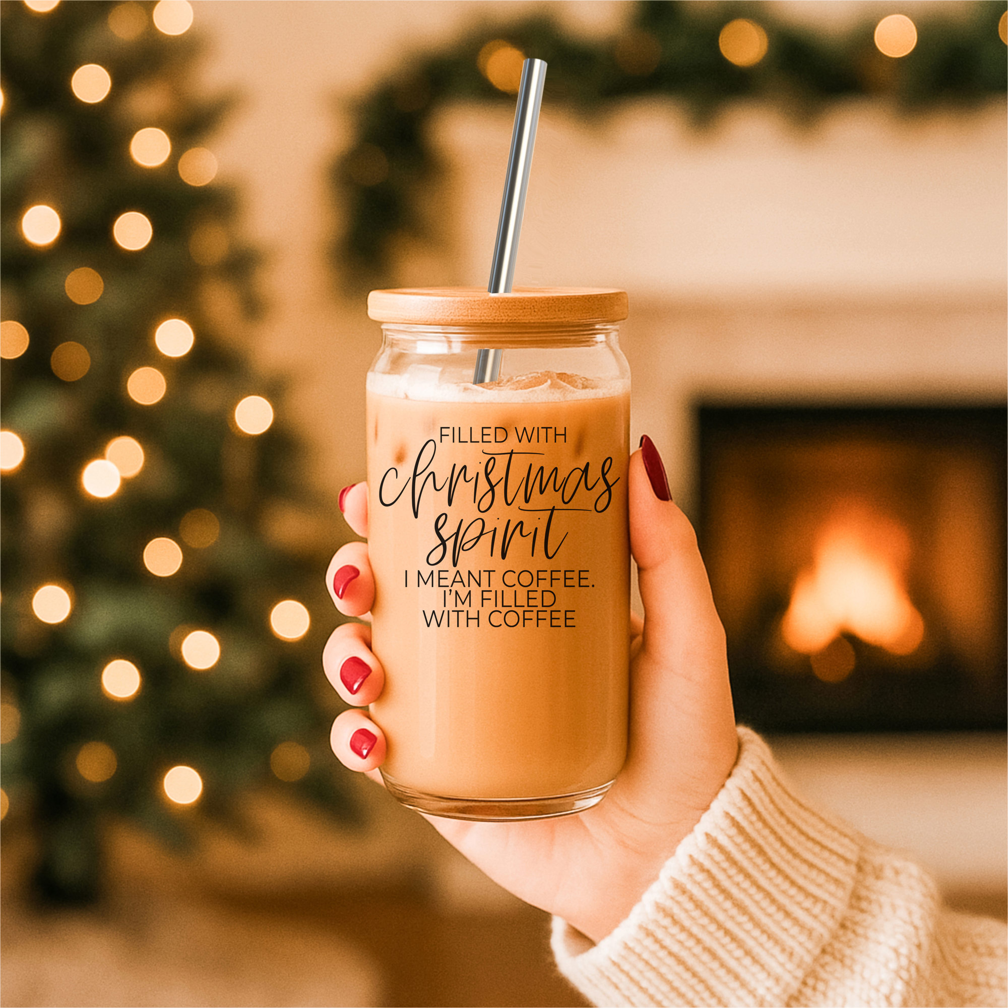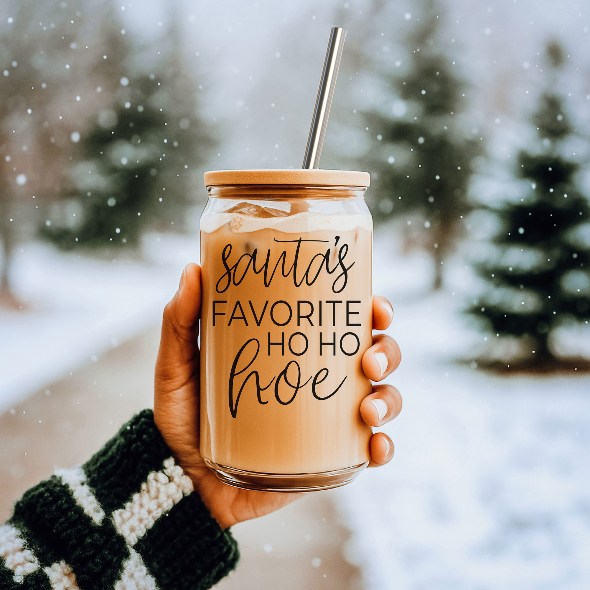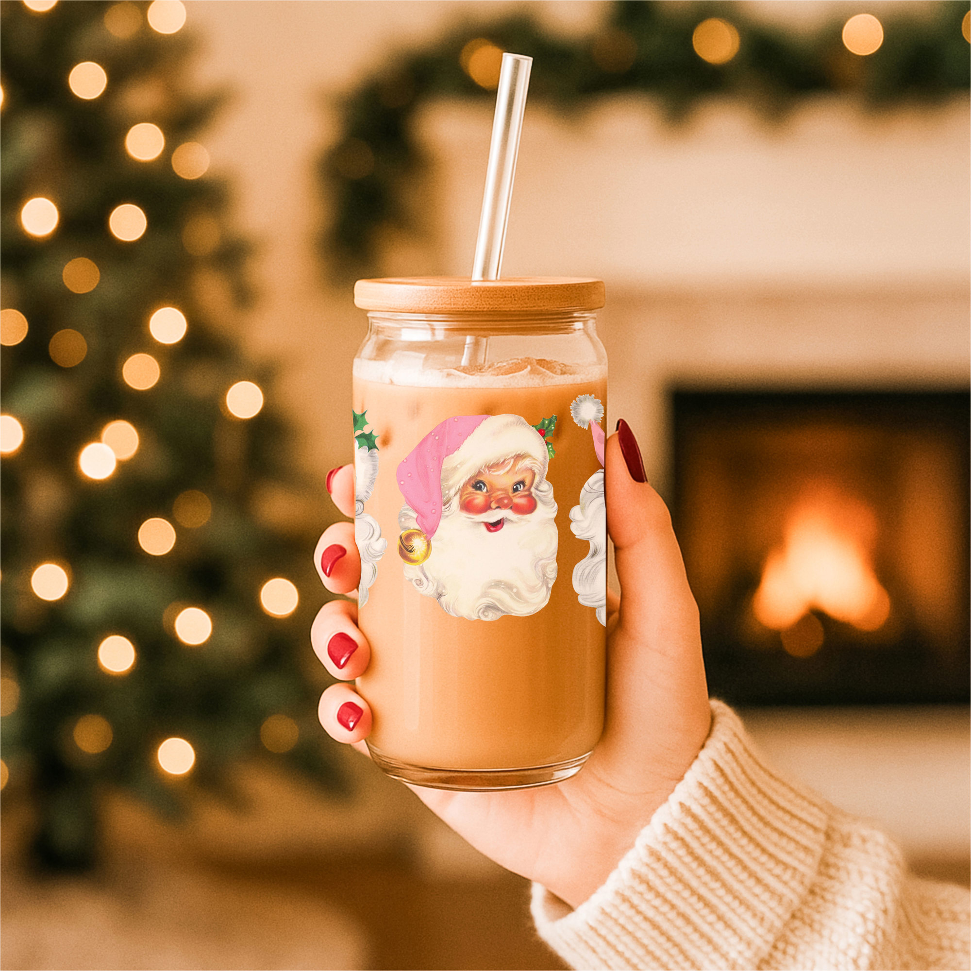 ✨ 17oz glass tumbler featuring Santa's most photogenic angles