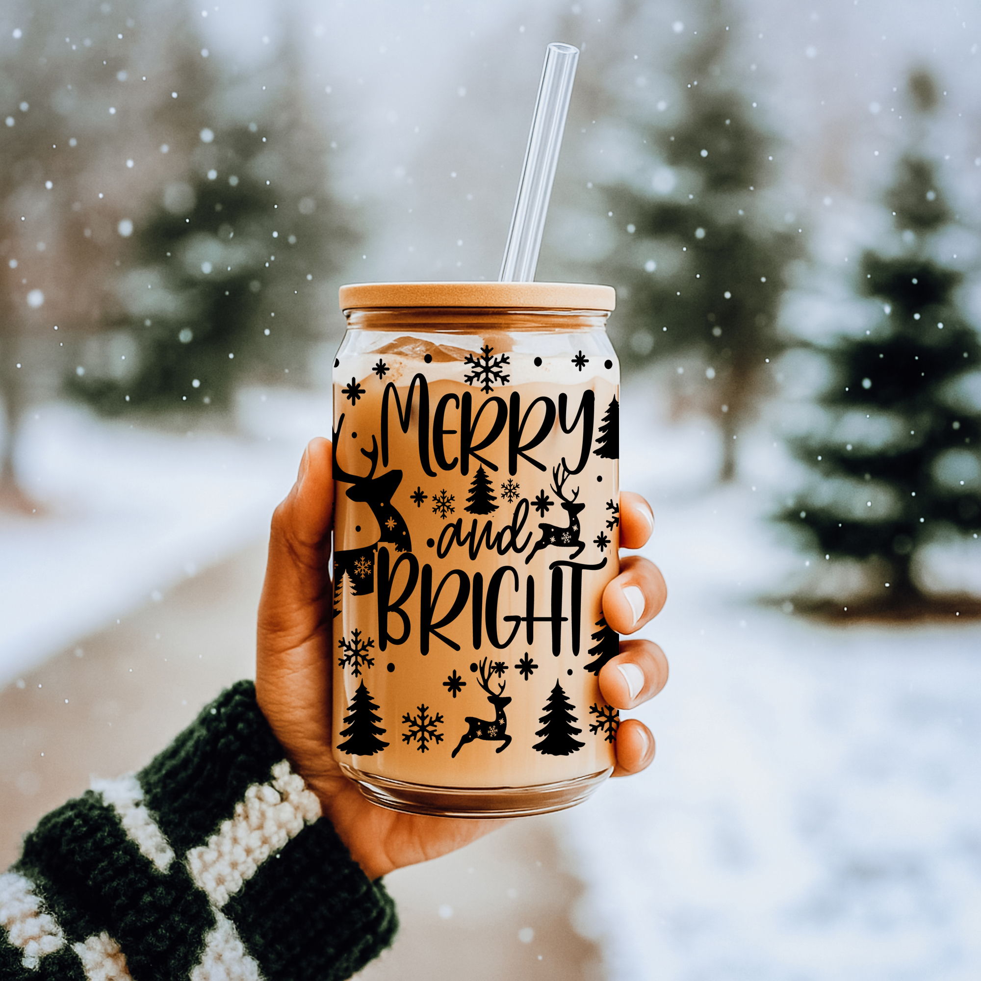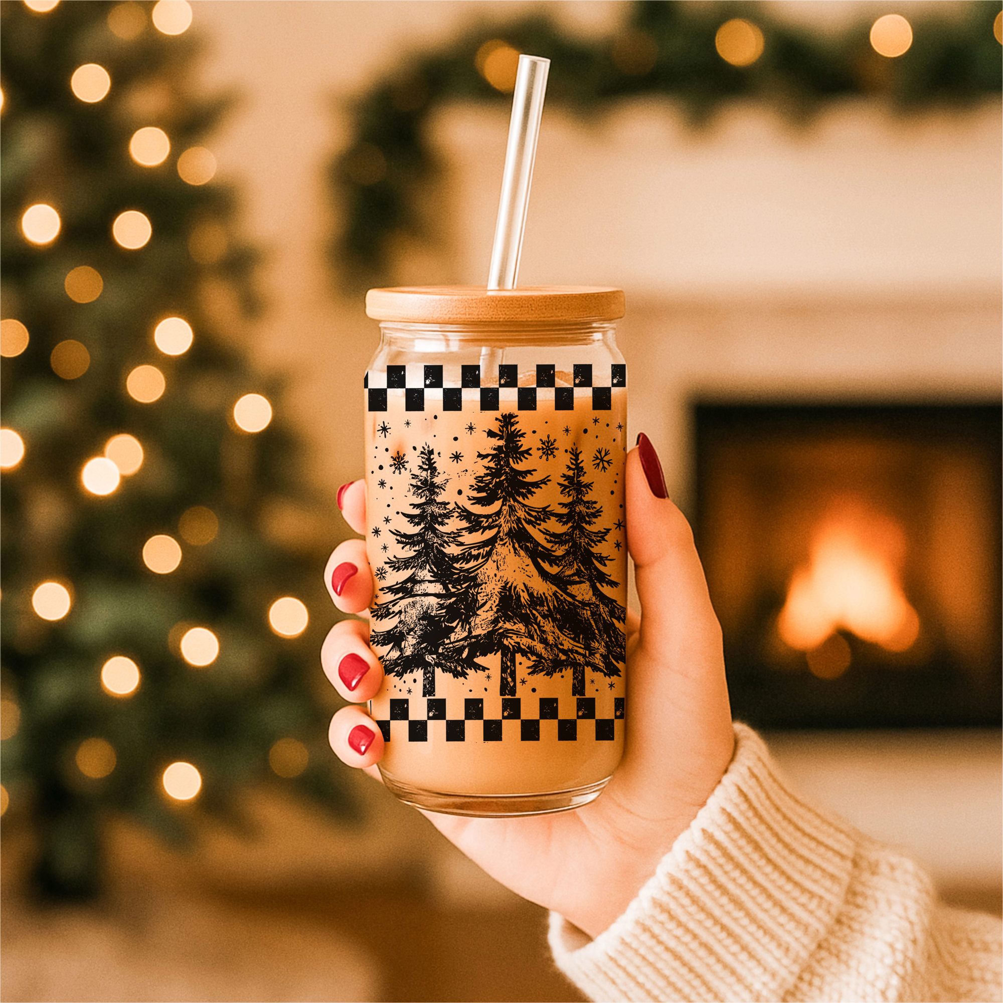 Christmas Kitchen Gifts & Holiday Drinkware Set, 2 Glass Tumblers of Choice, Christmas Glass Coffee Cups with Lid & Straws, Cute, Modern, Funny
