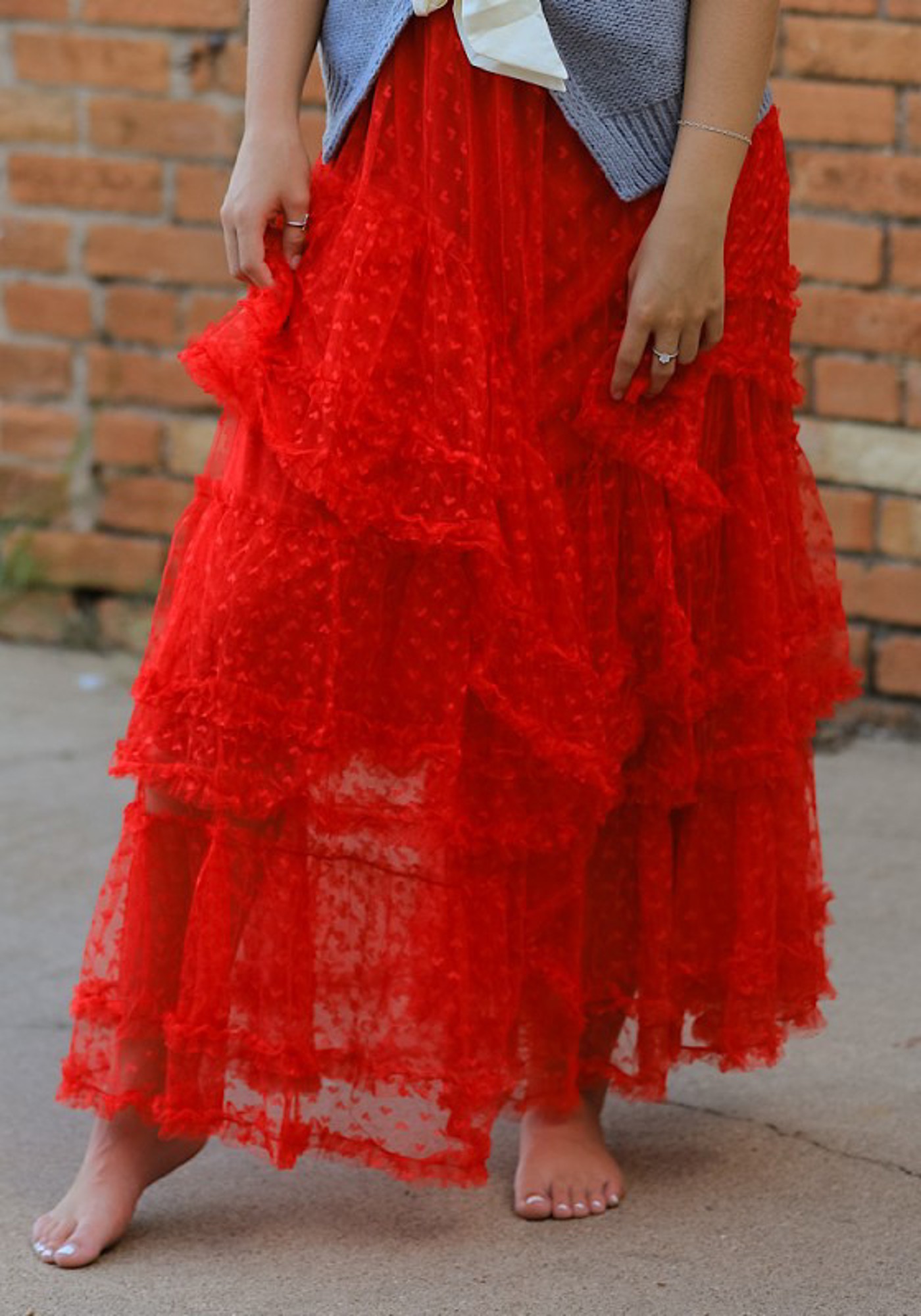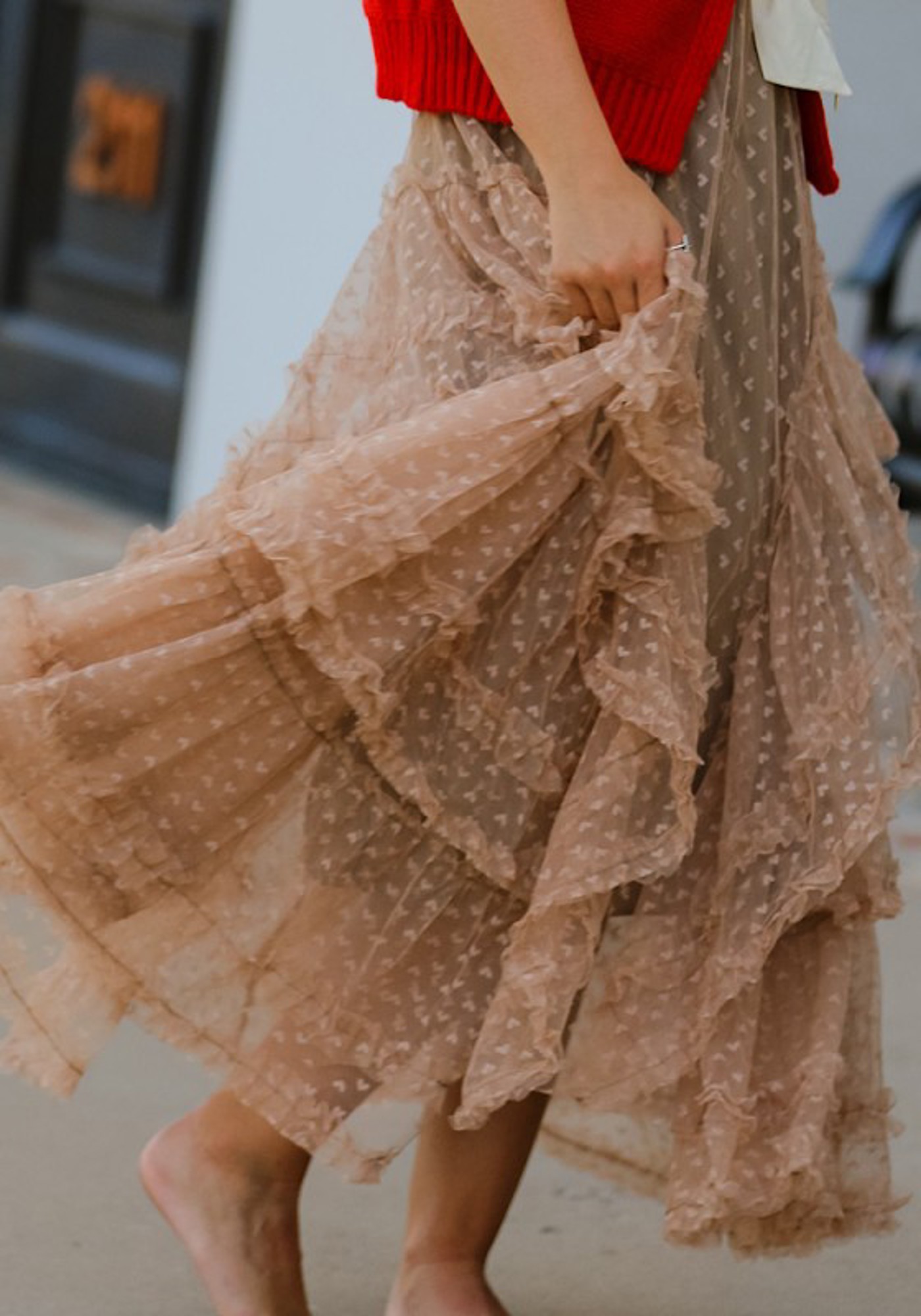Mesh ruffle maxi skirt