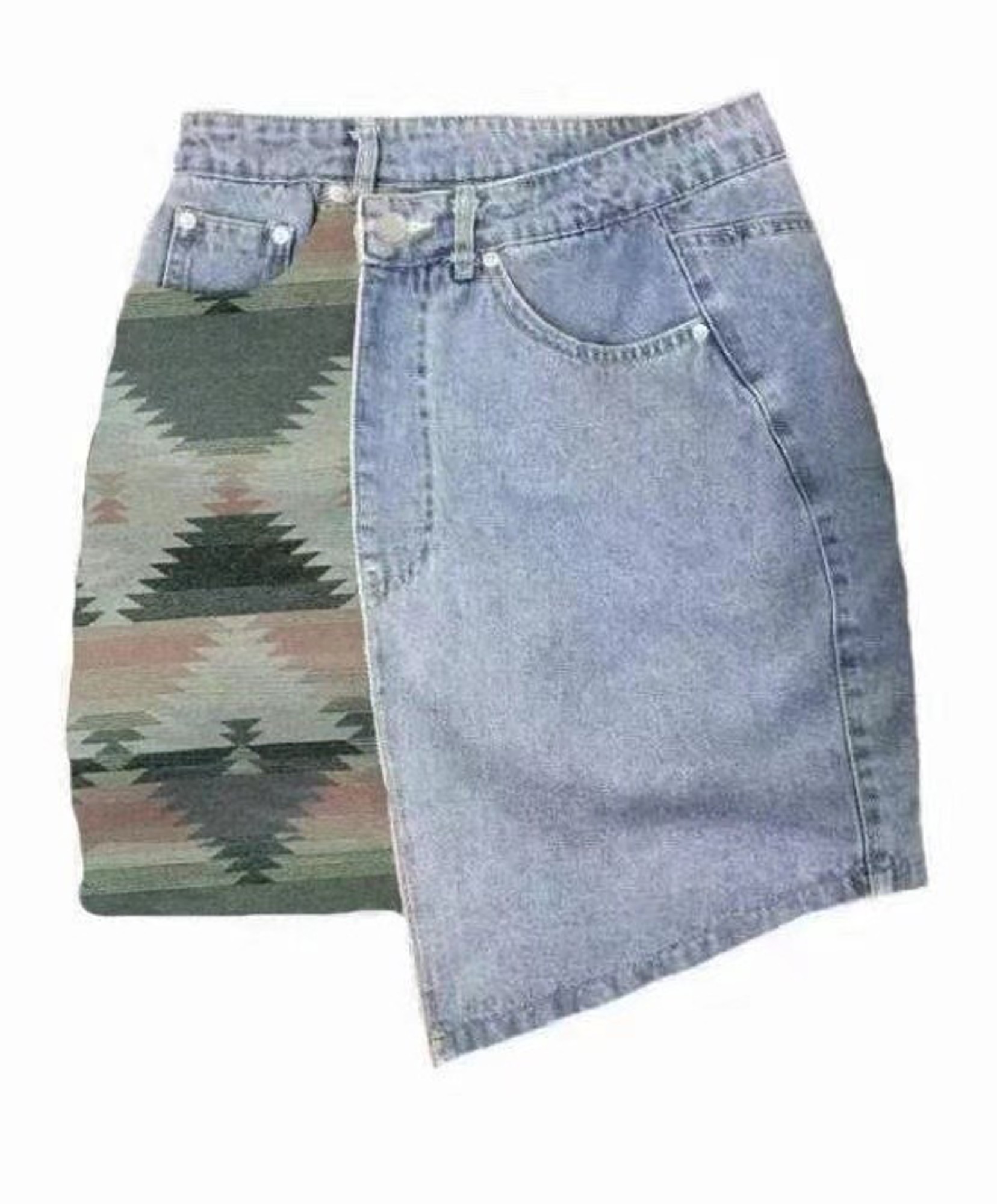 -Wrap denim skirt with contrast fabric