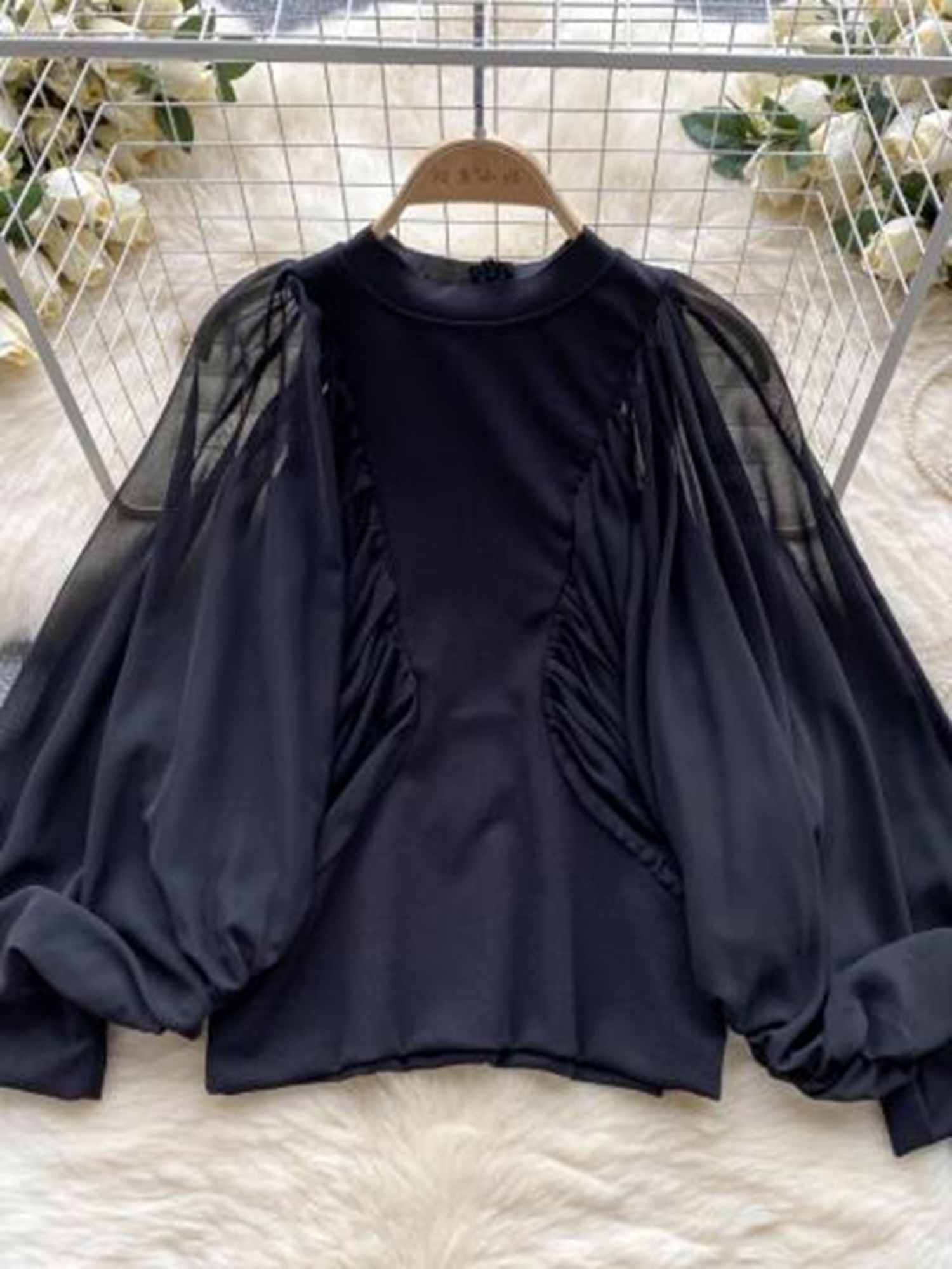 Puff mesh long sleeve top