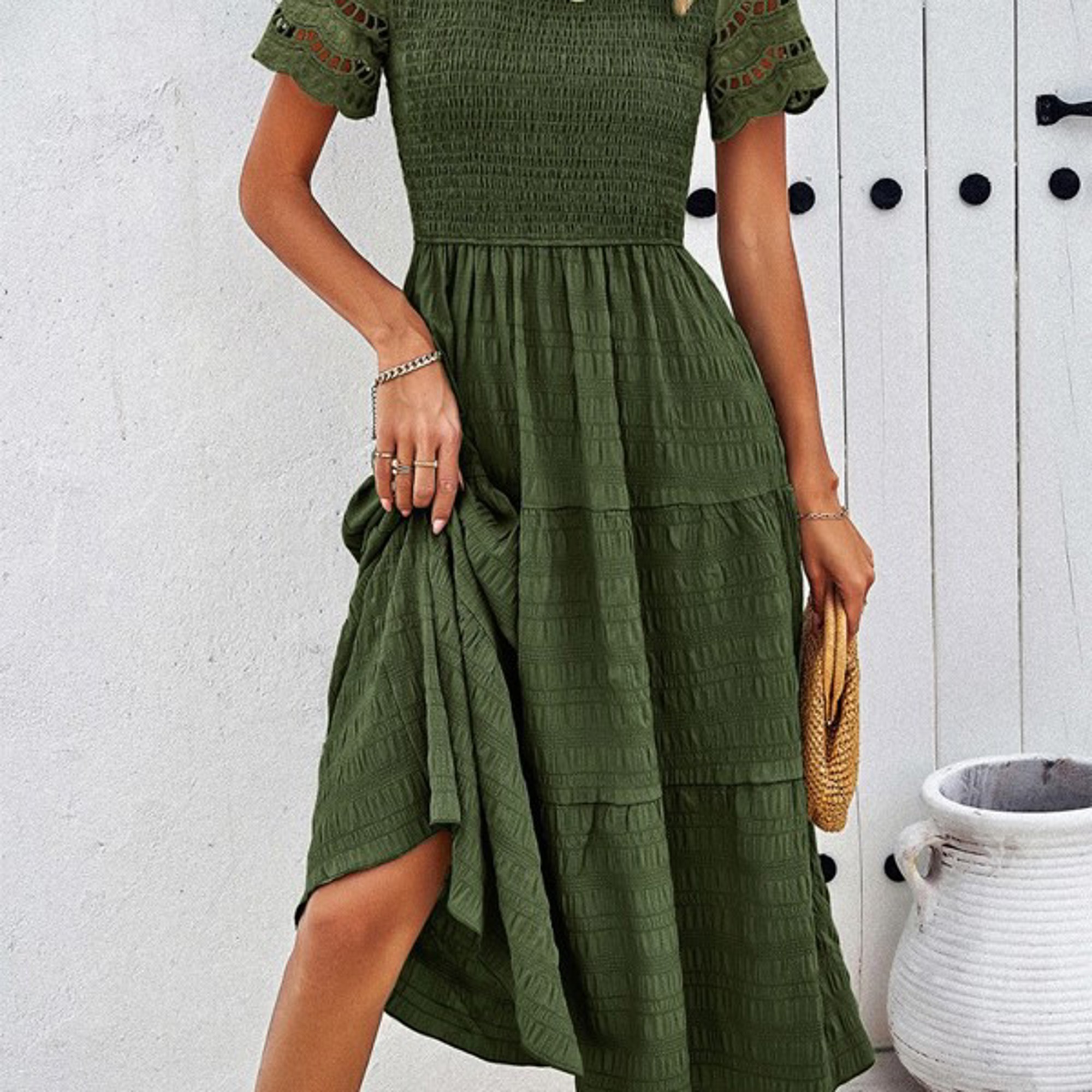 -The tiered, flowy skirt and short sleeves balance breezy coverage with a playful cute summer dresses appeal.