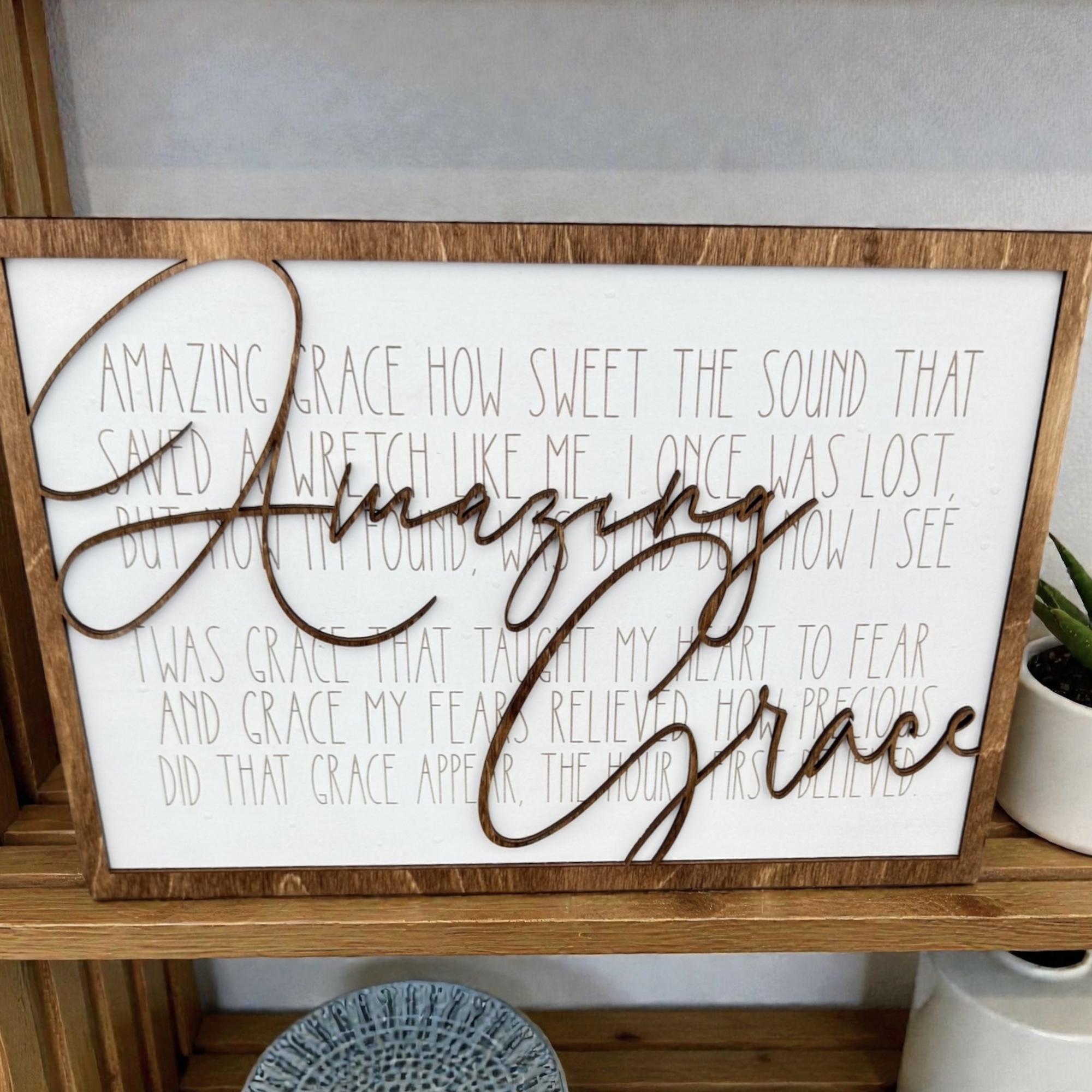 A timeless Amazing Grace Christian faith leaner sign, designed to add inspiration and meaning to any home décor space.