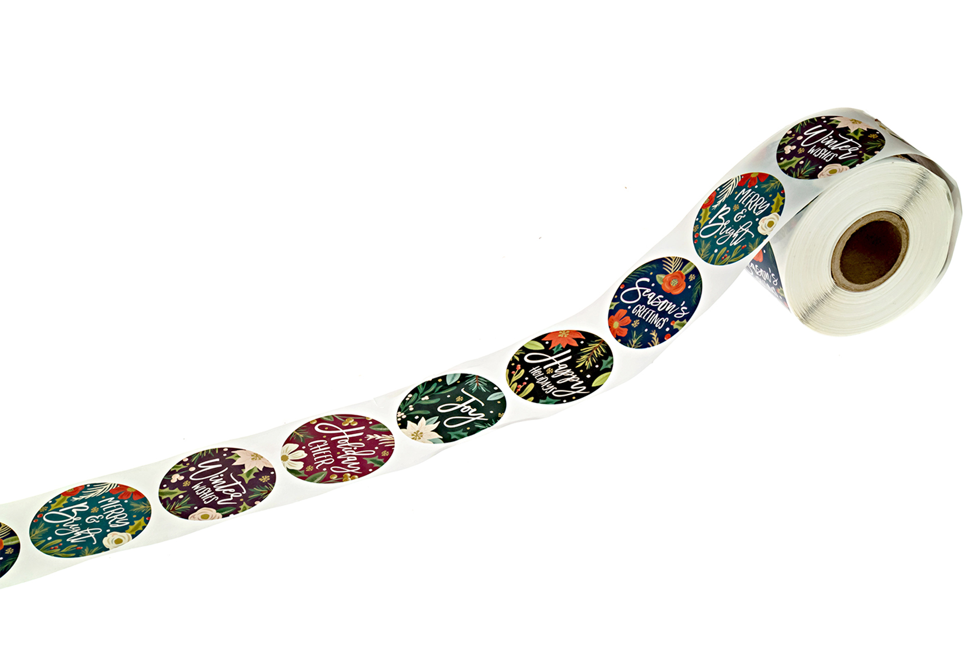 Spread joy this holiday with these bold Christmas stickers! This seasonal set features a modern twist on traditional poinsettias and other holiday florals. Each roll contains 500 stickers that each measure 1.5" in diameter with a perforation between labels for easy dispensing. These one-of-a-kind stickers are a great way to add some holiday cheer to packages and envelopes being sent to family and friends. Made in the USA.