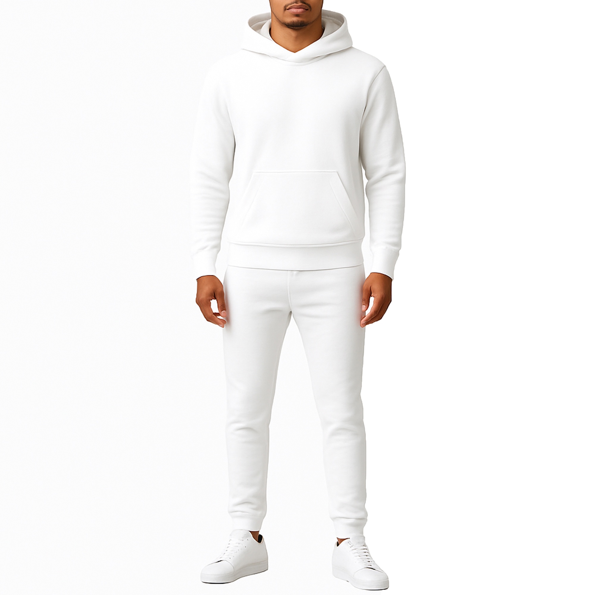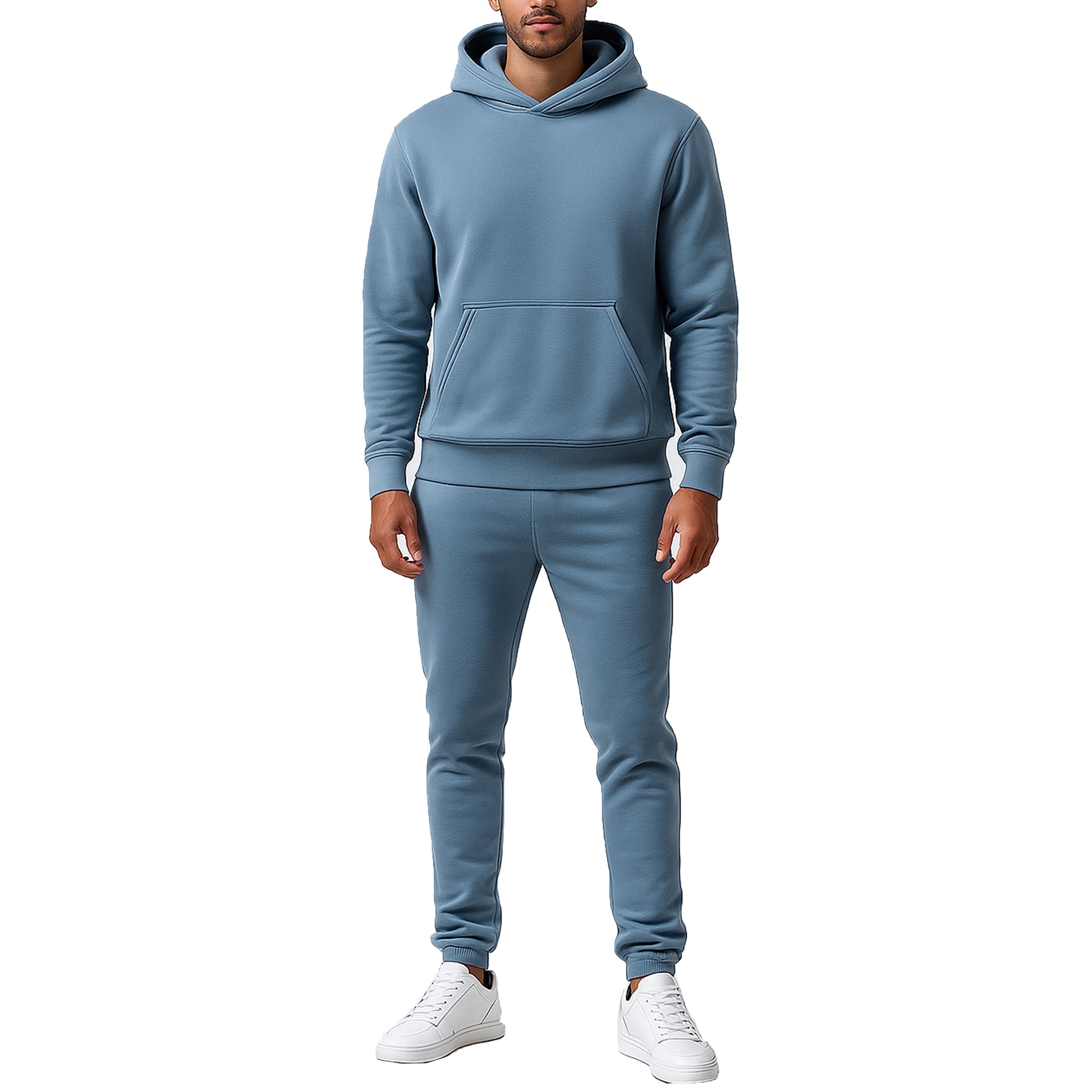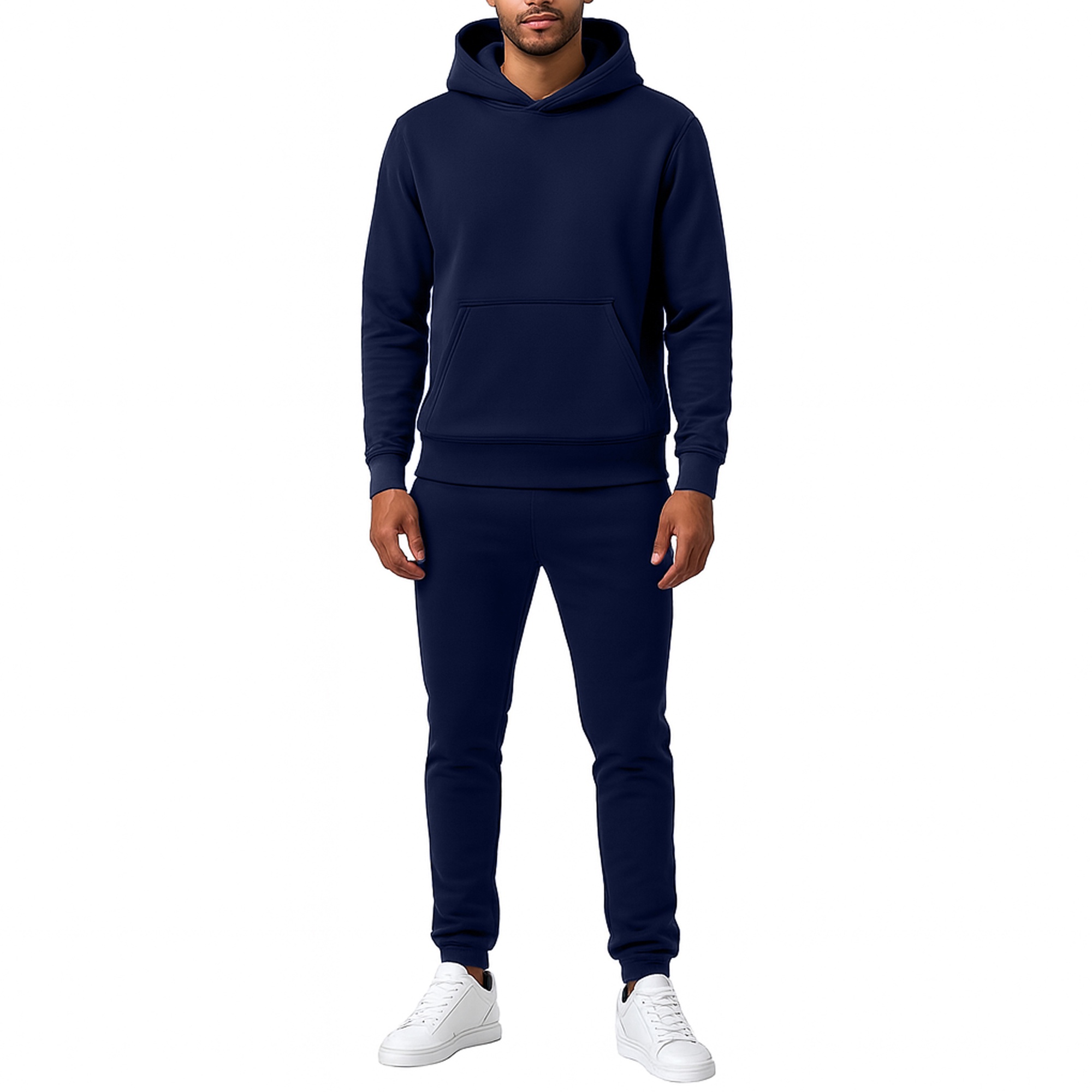 Men’s Heavyweight Soft Fleece Cotton Blend Pullover Hoodie & Sweatpants Jogging Set Stay warm and comfortable all day with this heavyweight fleece jogging set designed for everyday wear. The pullover hoodie and matching sweatpants are built with a clean look, soft interior, and practical details that make them easy to wear anywhere. Pullover Hoodie:Heavyweight cotton-blend hoodie with a soft fleece interior that keeps you warm without feeling bulky. Features an adjustable drawstring hood and a spacious front kangaroo pocket. Ribbed cuffs and hem help lock in warmth and maintain a clean fit. Sweatpants:Matching heavyweight fleece joggers with an elastic waistband, adjustable outer drawstring, and ribbed cuffs for a tapered fit. Includes two deep side pockets for carrying basics securely. Material:Made from a durable 60% cotton / 40% polyester blend for warmth, softness, and long-lasting wear. Care:Machine wash cold for easy maintenance. Available Sizes:Small through 2XL.