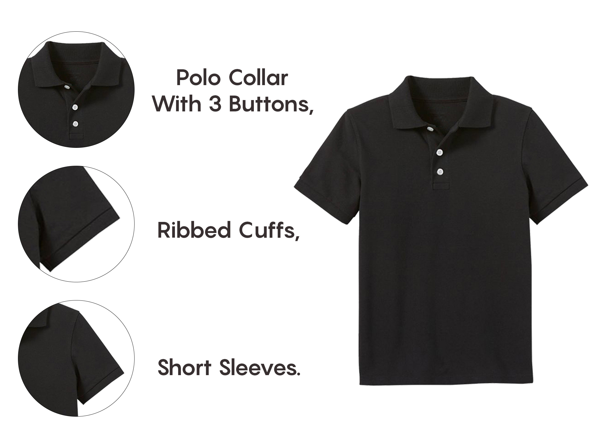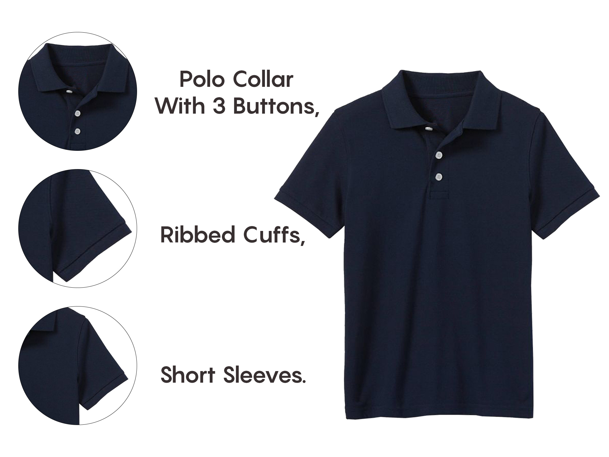 The breathable polo shirt is a must-have for boys' school wardrobes. Made with a high quality cotton/poly pique fabric for optimal softness and durability, it features a polo collar with 3 buttons, ribbed cuffs, short sleeves and is tagless to prevent irritation. It stands up to multiple washes without fading and has no logo stitched on the chest, making it school approved. With this timeless style and comfortable fit, your boys will look stylish yet relaxed no matter what the occasion!
