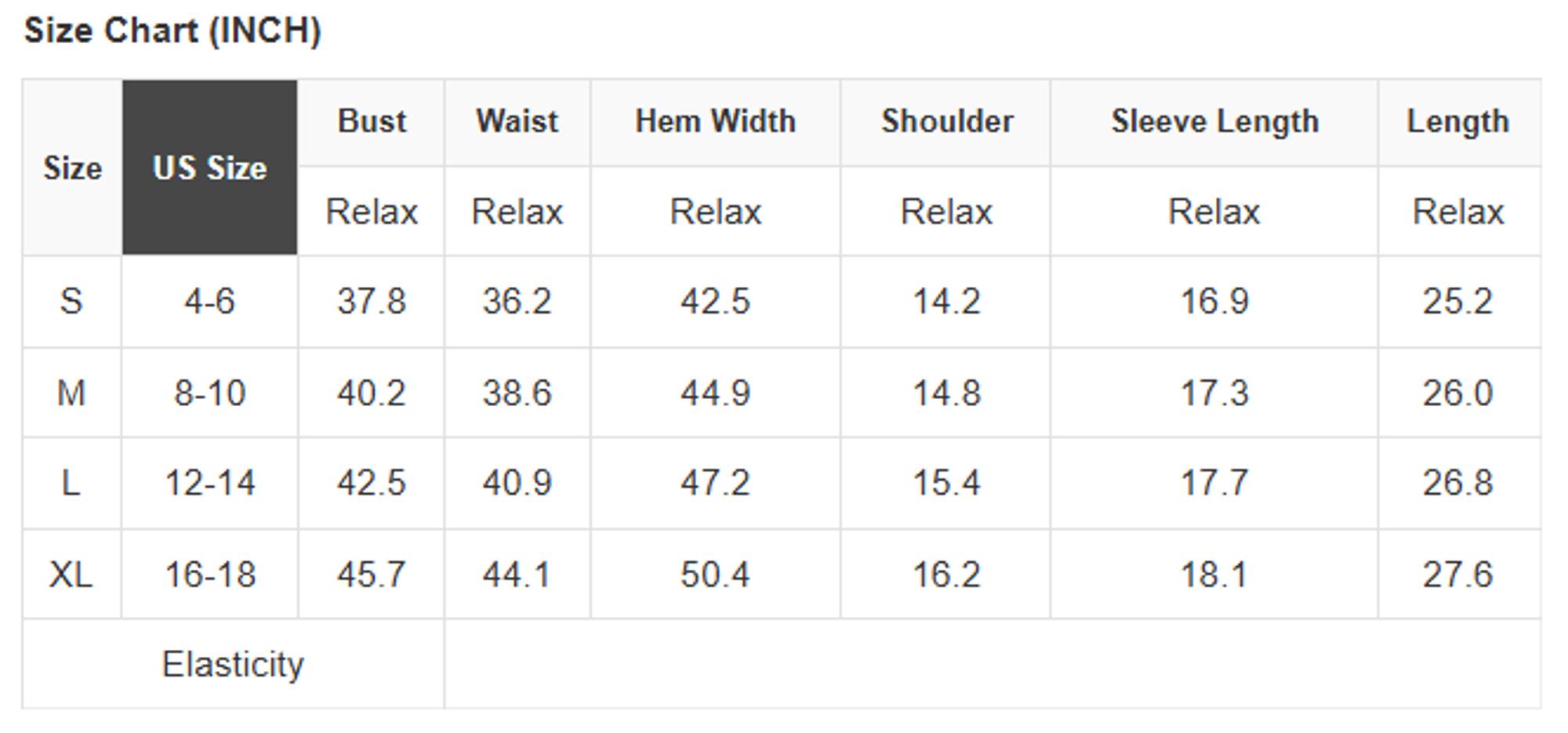 Size Info: See size chart for approximate measurements