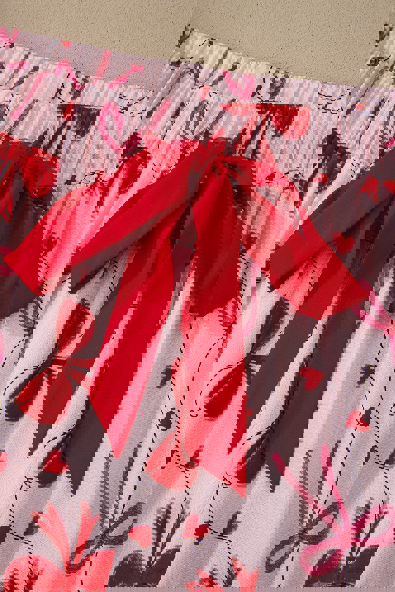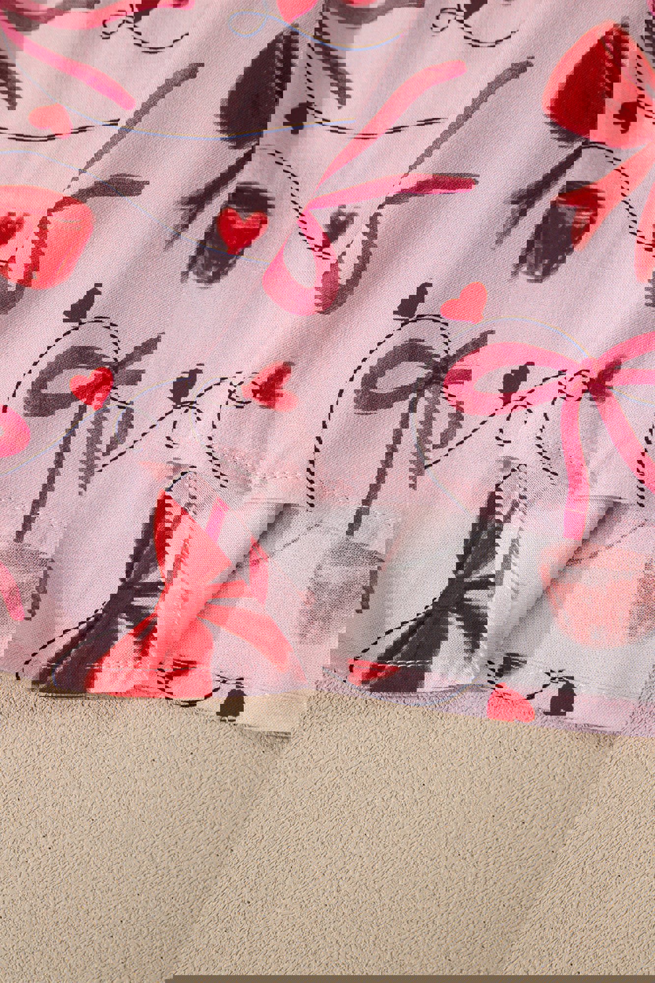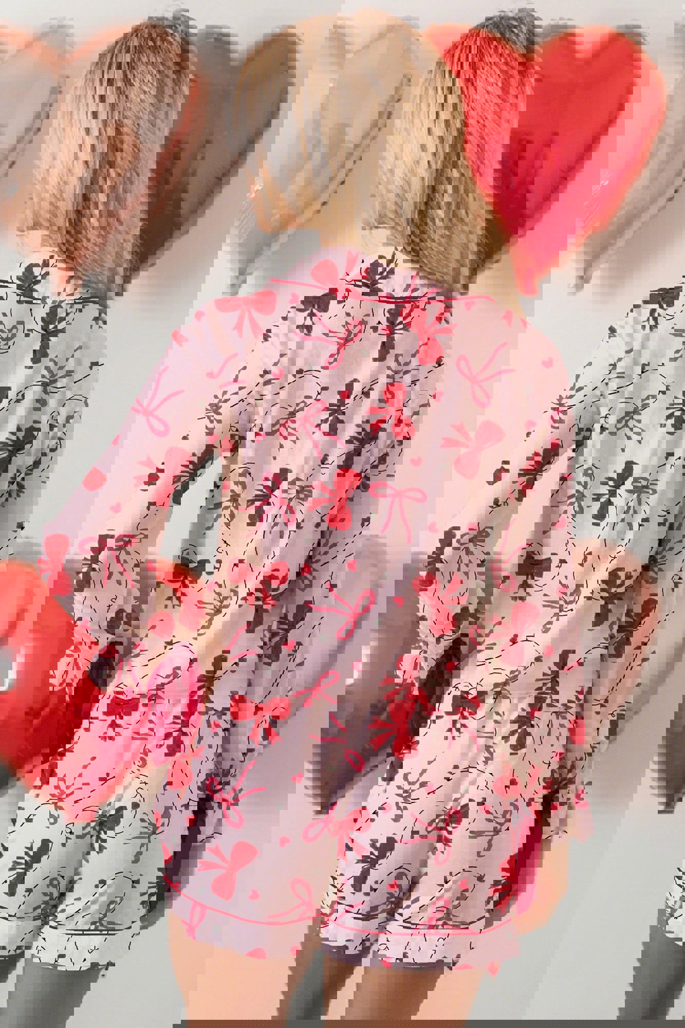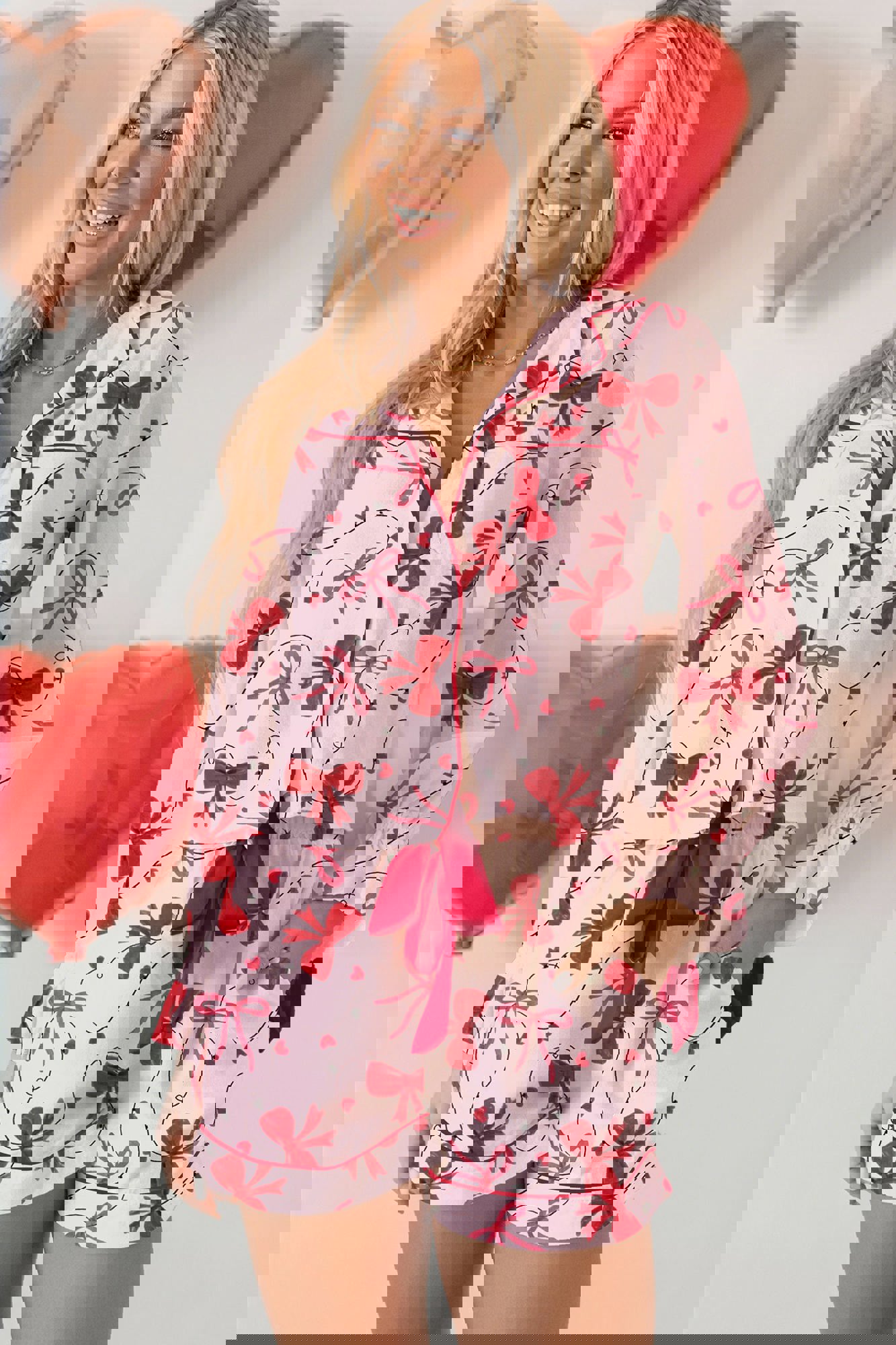Cuddle up in style with this adorable pajama set! Featuring a charming romantic bow design perfect for spreading love this season, this two-piece set pairs a long-sleeve shirt with matching shorts for a perfectly coordinated look. Crafted from soft, breathable fabric, you'll stay cozy and comfortable all night long. Whether you're lounging at home or getting ready for bed, this playful set brings festive flair to your sleepwear collection. 100% Viscose