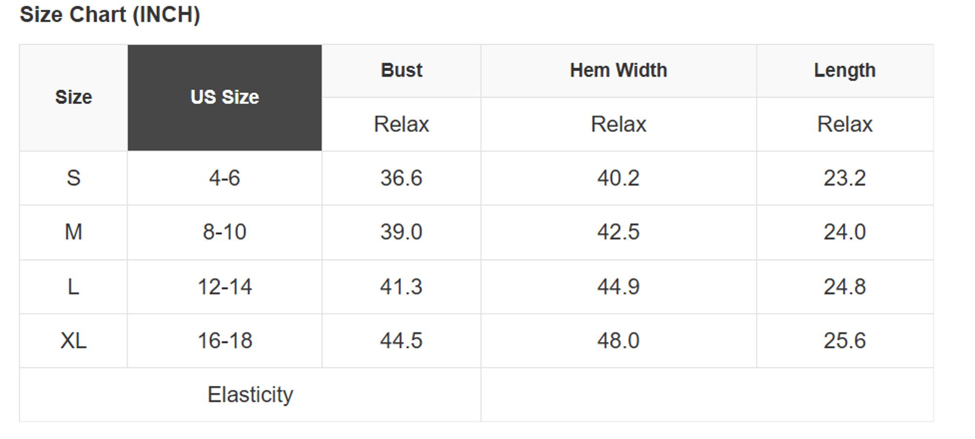 Size Info: See size chart for approximate measurements
