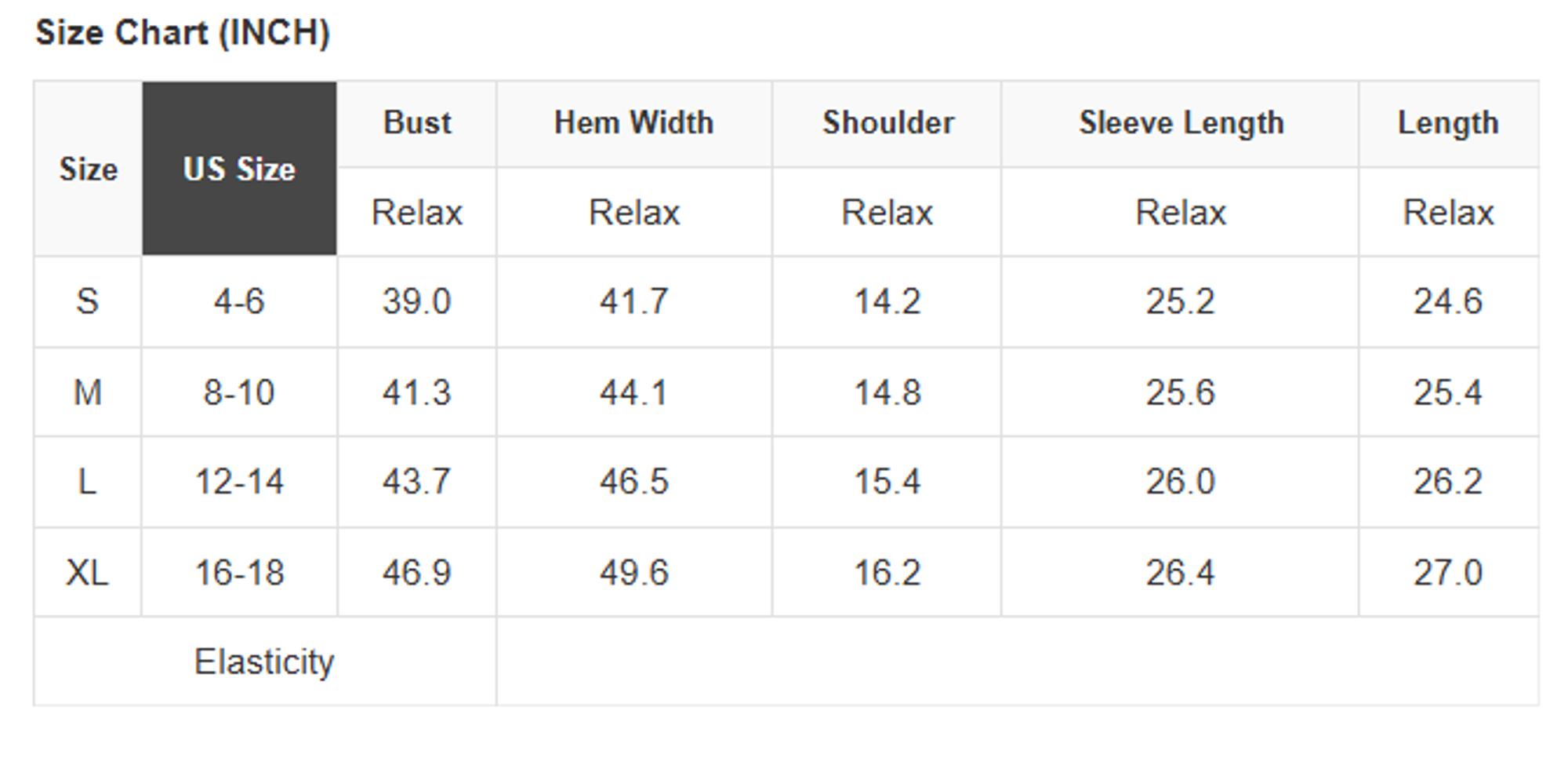 Size info: See size chart for approximate measurements.