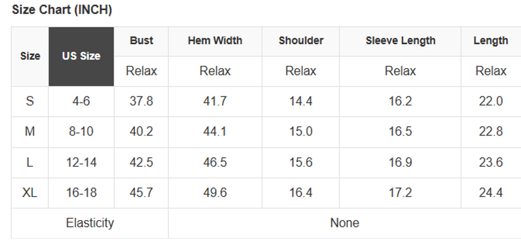 Size info: See size chart for approximate measurements.