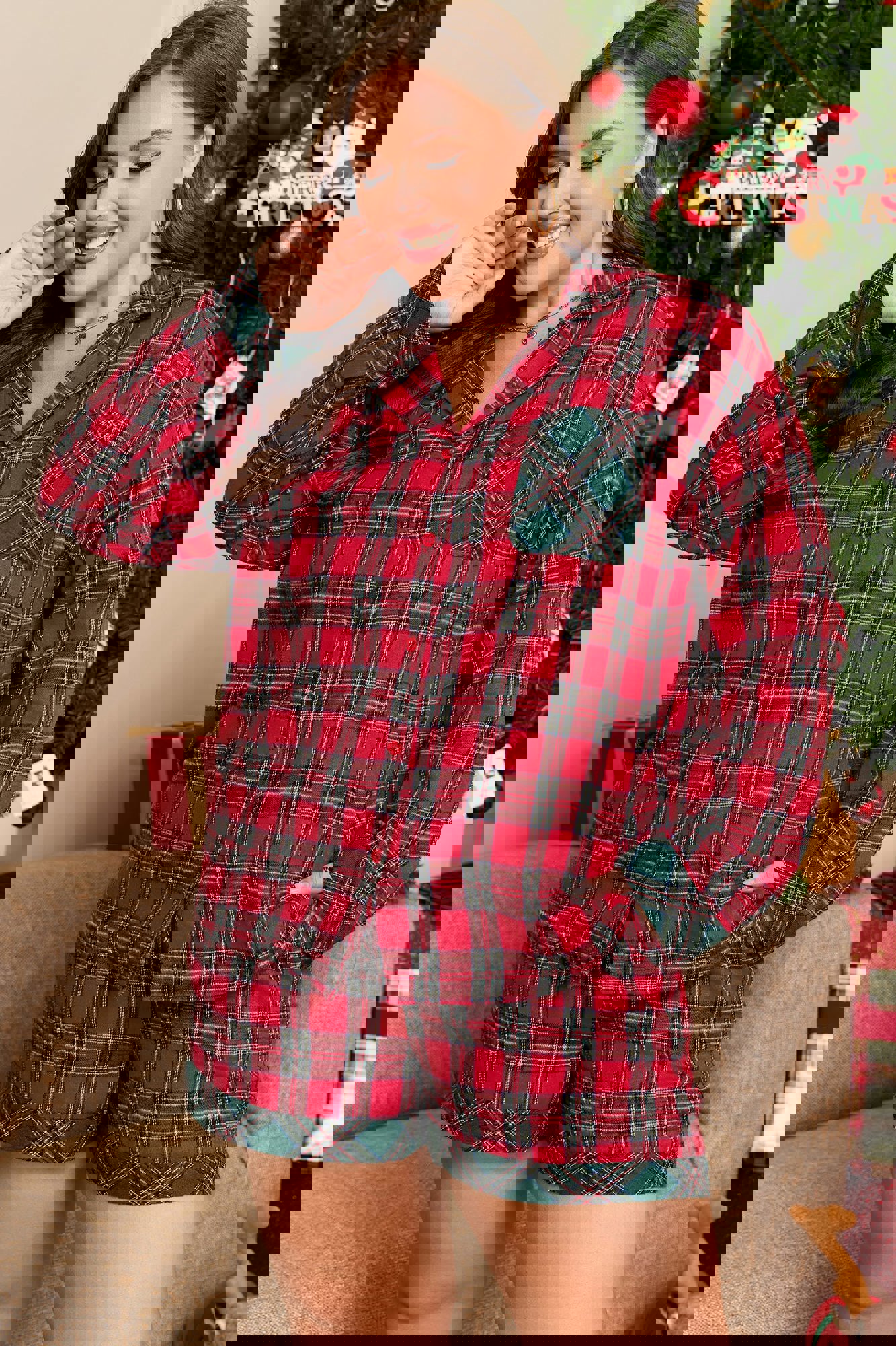 Clearance! Plus Size Christmas Plaid Pajama Set
