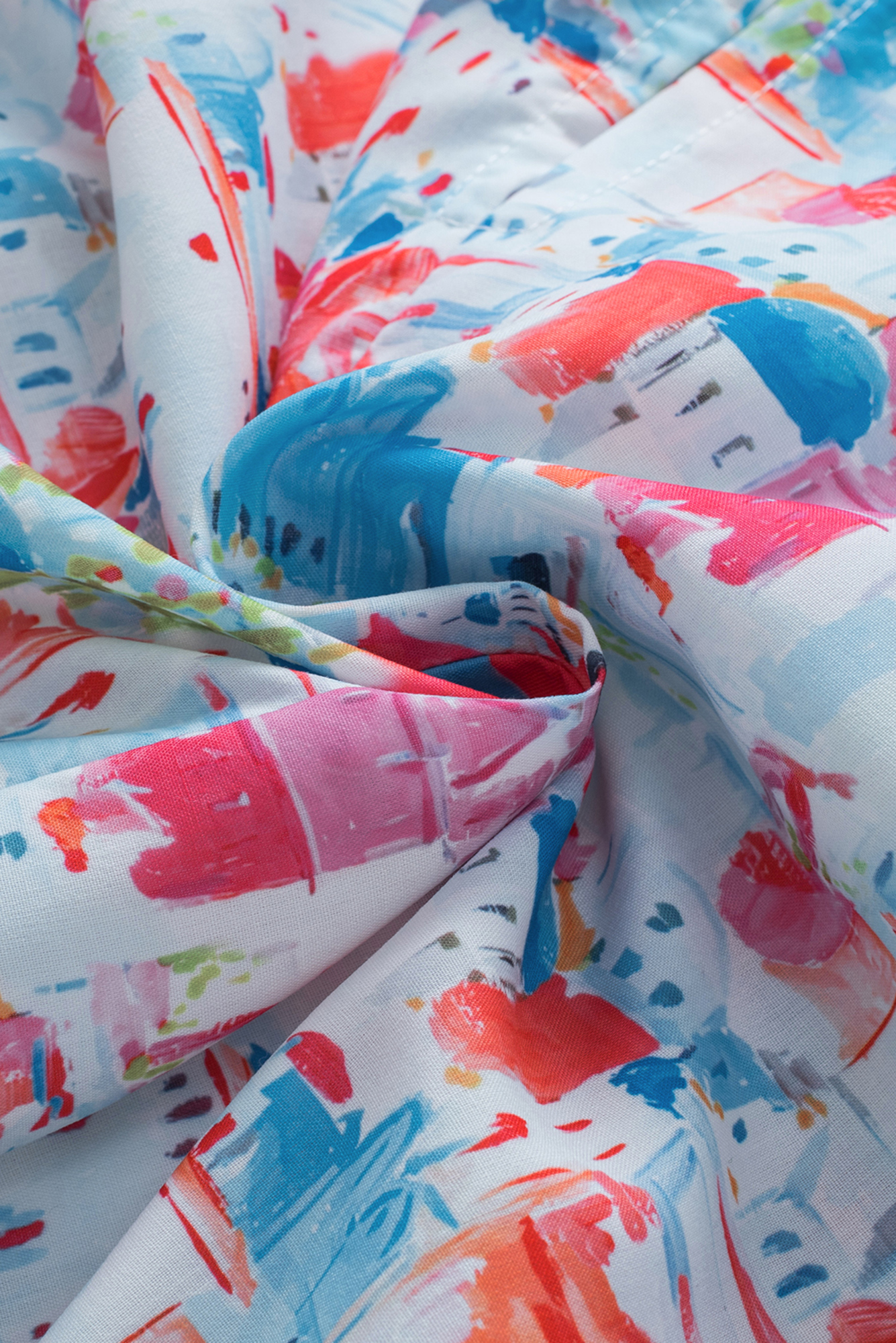 This whimsical babydoll top is bursting with personality thanks to its vibrant abstract cityscape print inspired by Santorini. The crew neckline and back button closure keep things classic while the keyhole detail adds an unexpected twist. Puffy sleeves with elastic cuffs bring graceful movement, and the relaxed fit flatters without clinging. A ruffled hemline gives it that playful finishing touch—perfect for pairing with your favorite bottoms for a look that's totally you. 100% Polyester