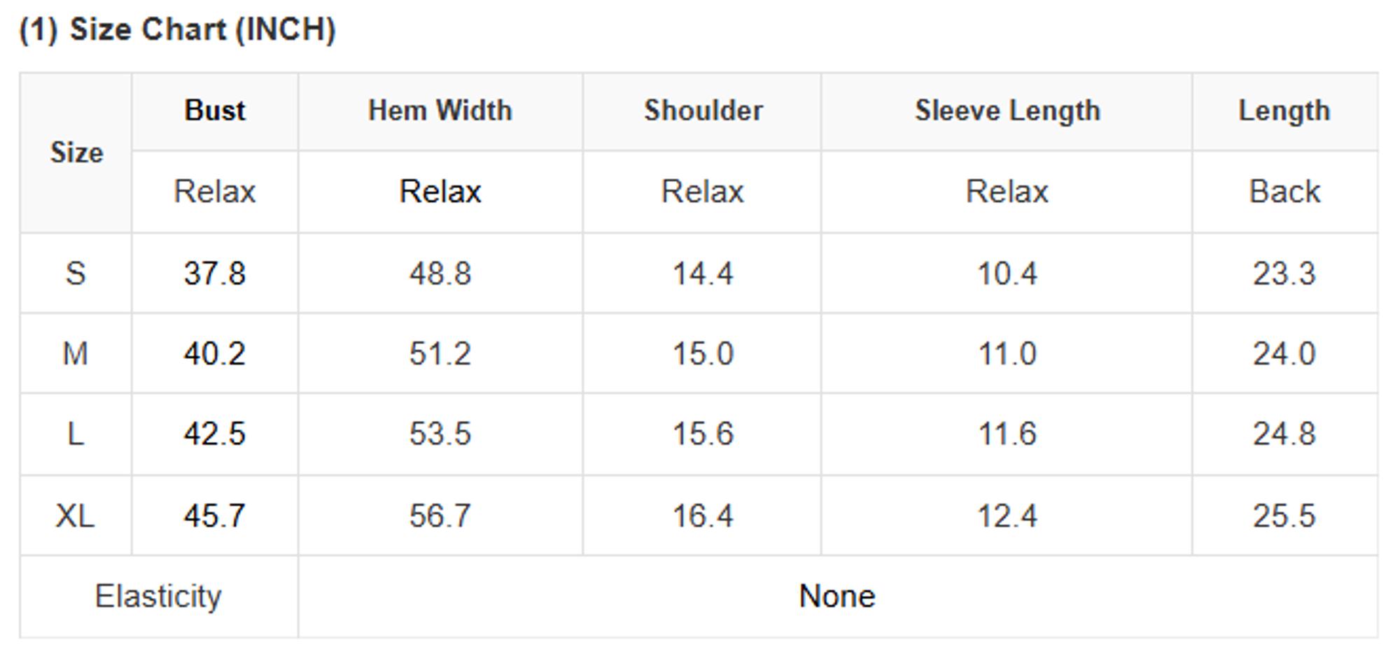 Size Info: See size chart for approximate measurements