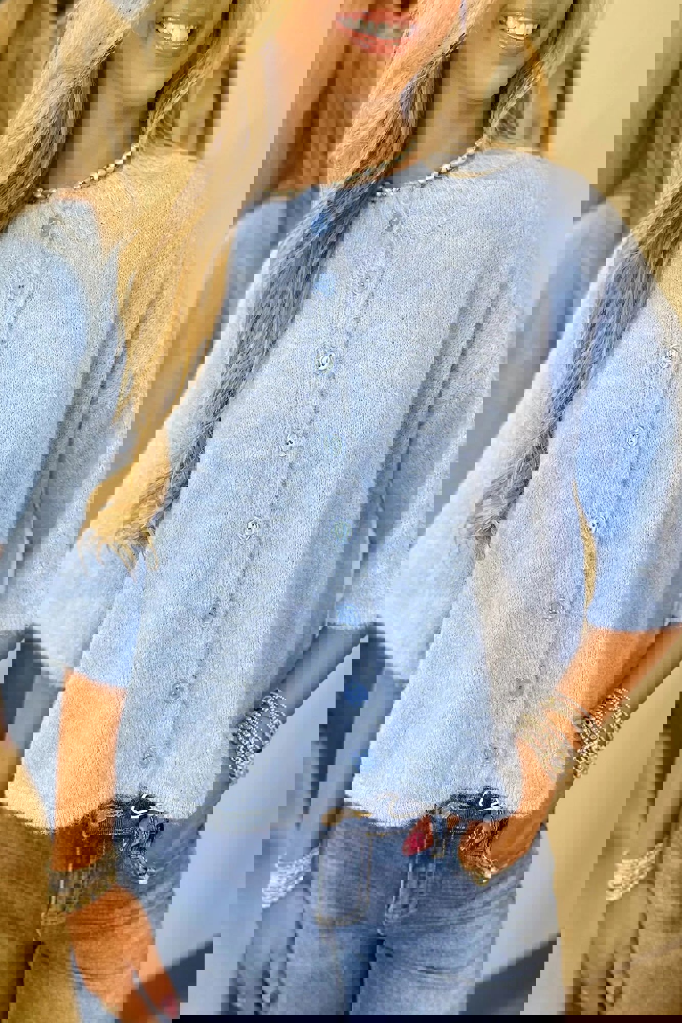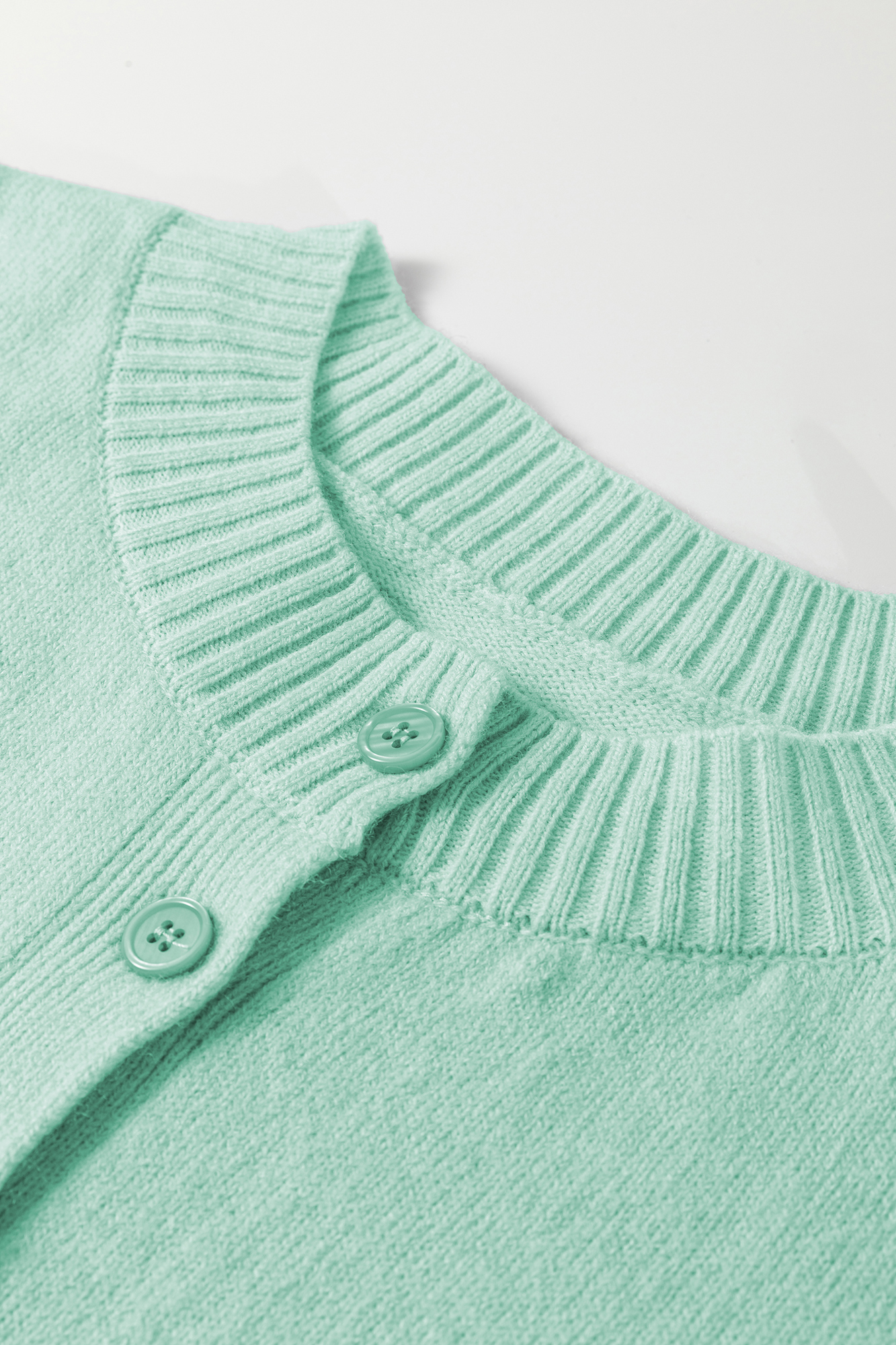 Meet your new go-to layer! This cardigan brings effortless cool to any outfit with its relaxed, modern silhouette and perfectly proportioned 3/4 sleeves, ideal for those in-between seasons when you can't quite commit to a full coat. The button-down design makes getting dressed a breeze, while the soft knit fabric feels as good as it looks. Throw it over your favorite jeans for casual vibes or layer it with a dress for instant polish. Simple, versatile, and endlessly wearable. Acrylic/Polyester/Poly