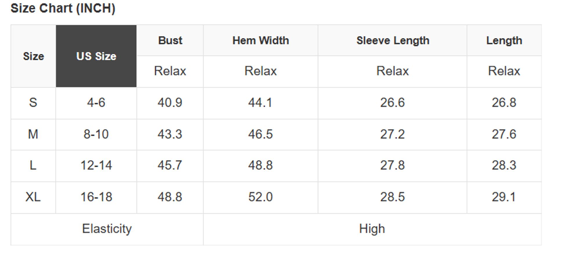 Size Info: See size chart for approximate measurements