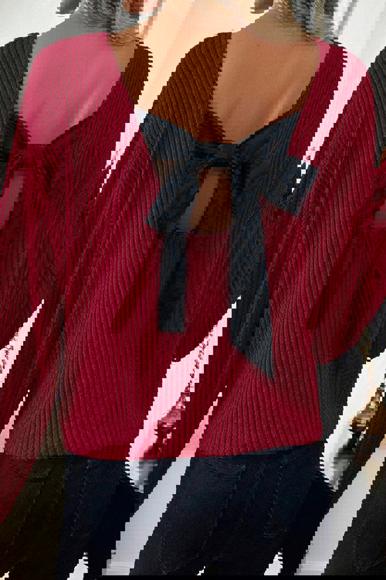 HIDDEN GEMS | Bow Tie Back Long Sleeve Top