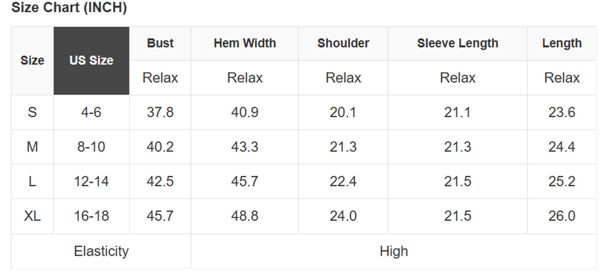 Size Info: See size chart for approximate measurements.