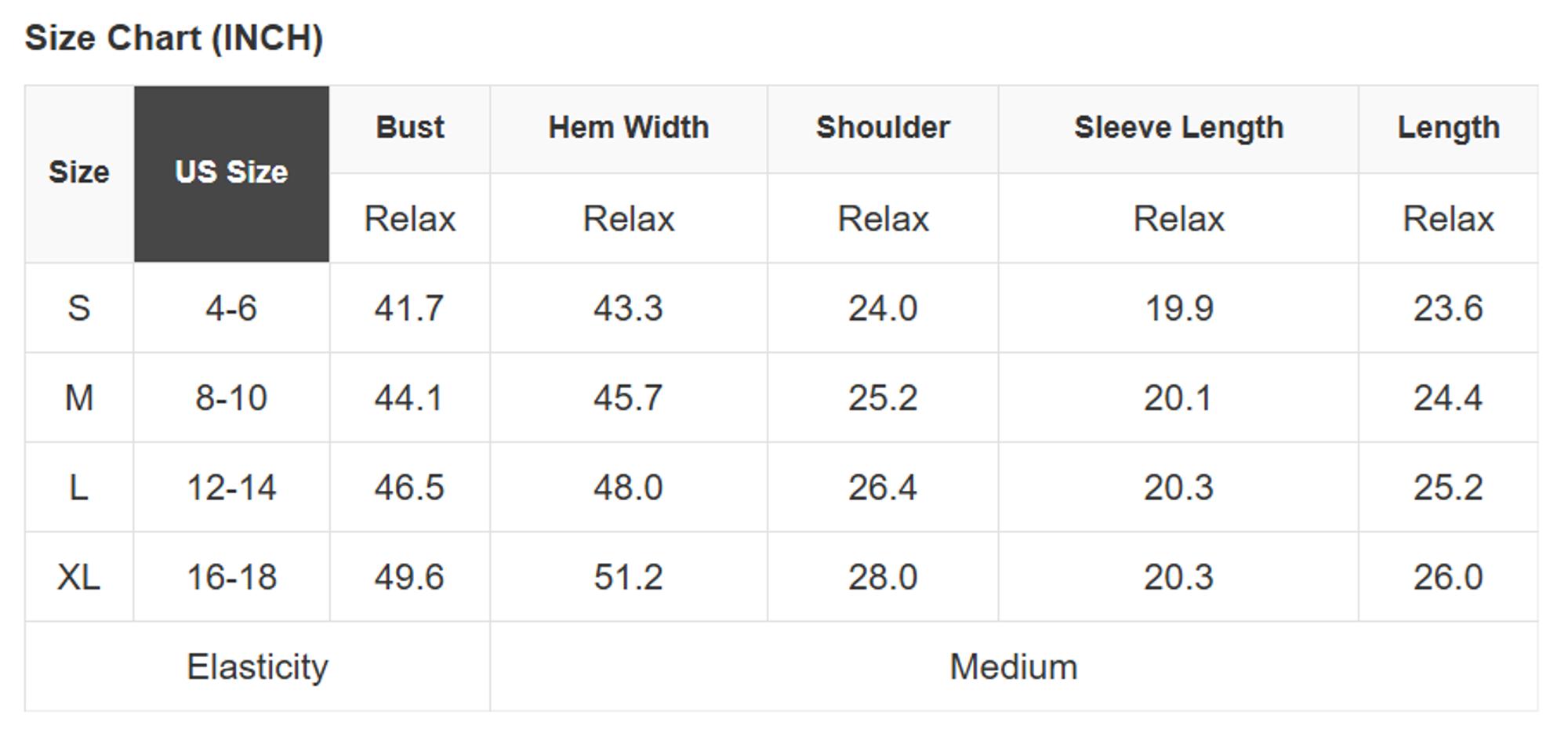 Size Info: See size chart for approximate measurements