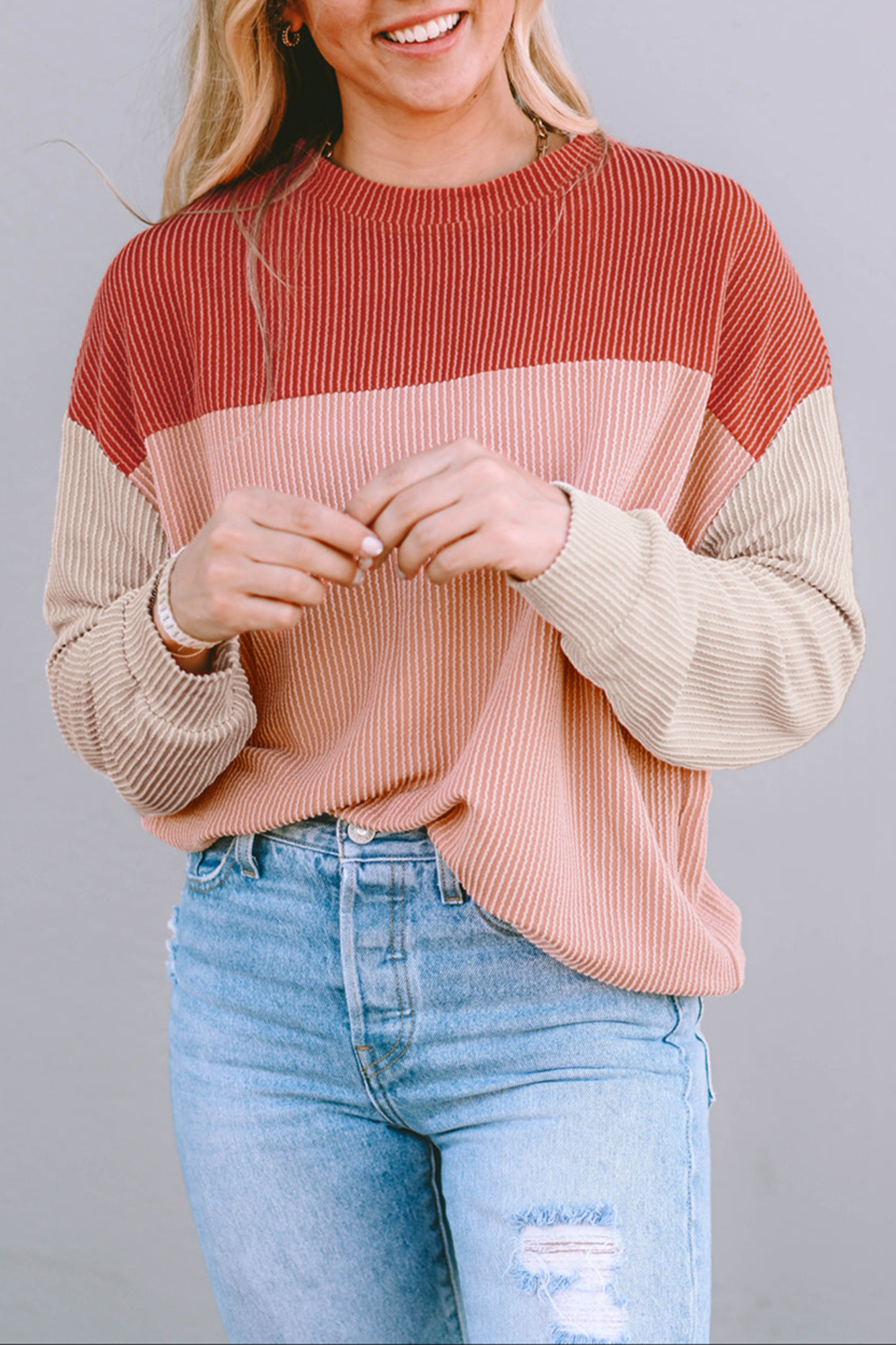 HIDDEN GEMS | Colorblock Ribbed Long Sleeve Top