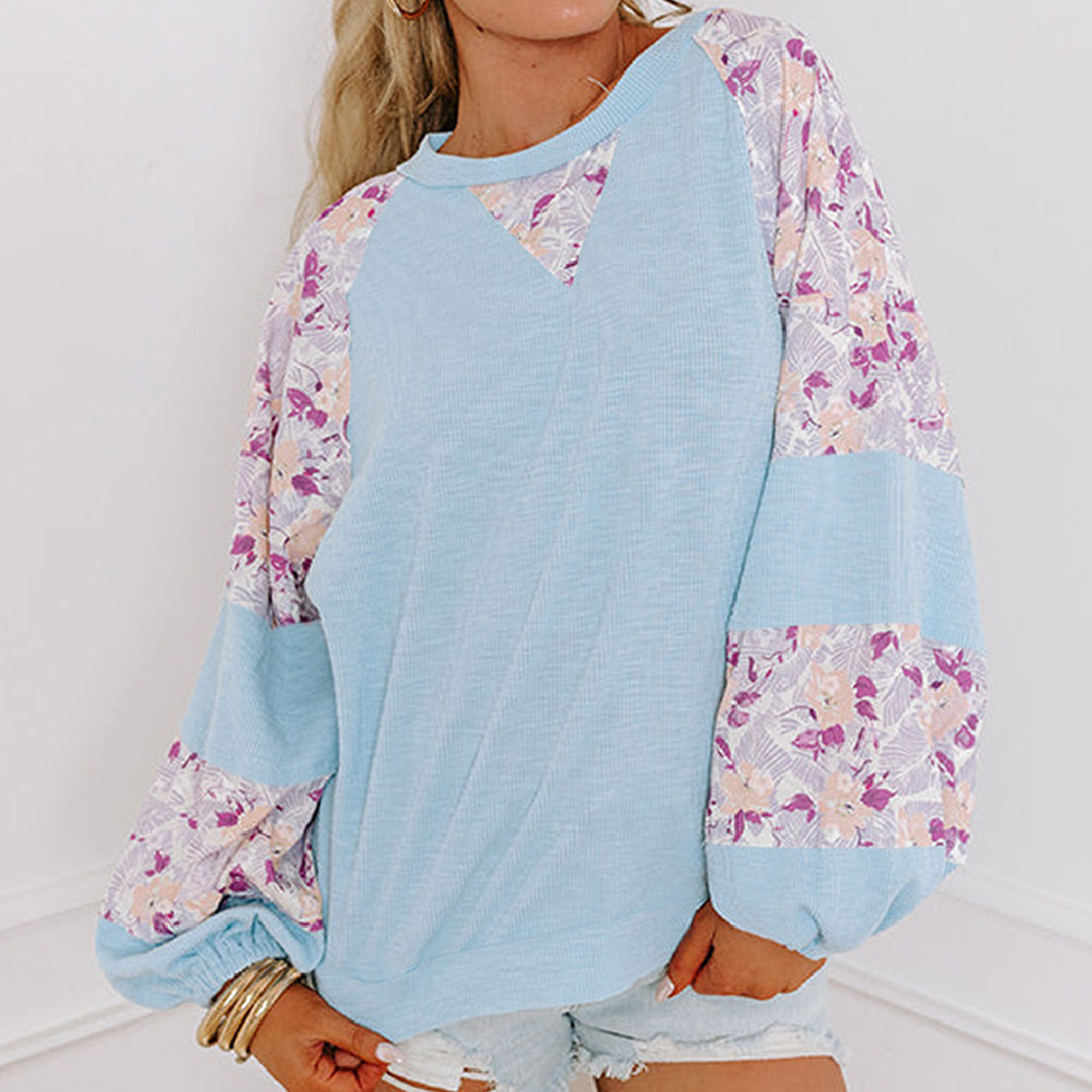 HIDDEN GEMS | Floral Patchwork Balloon Sleeve Ribbed Blouse