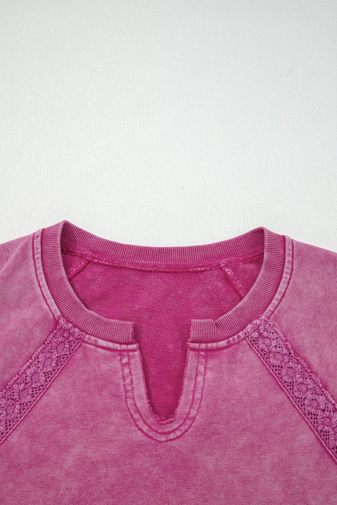HIDDEN GEMS | Lace Patchwork Mineral Wash Raglan Sweatshirt
