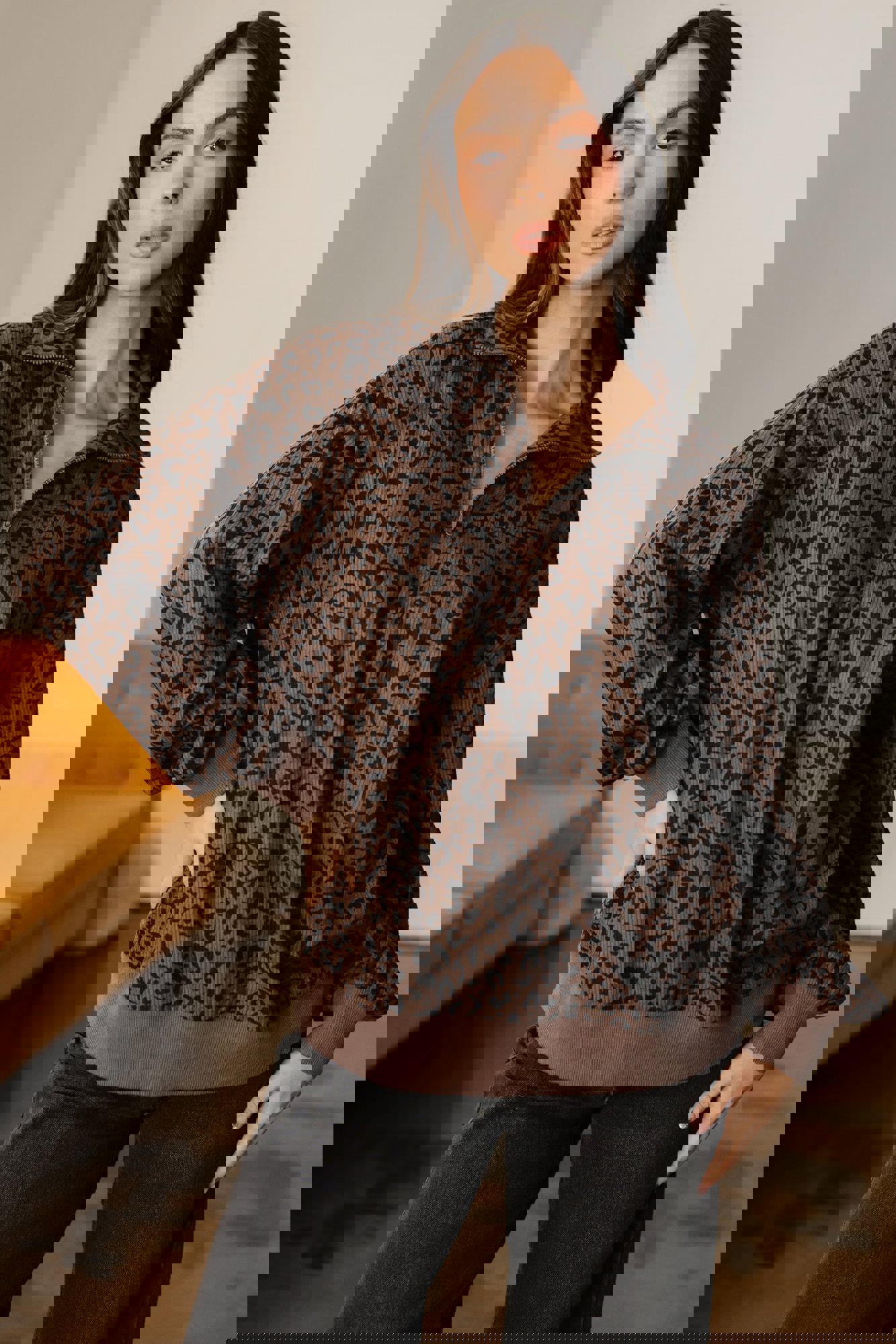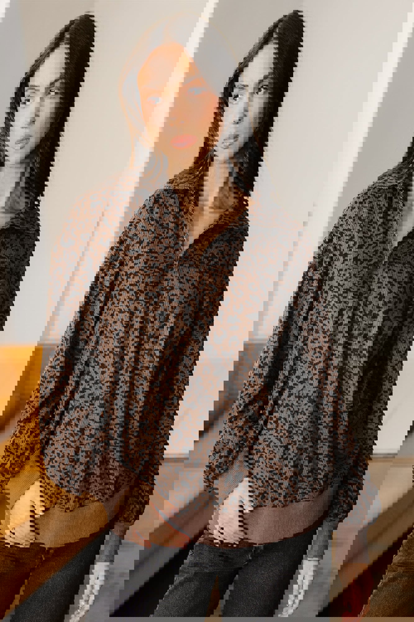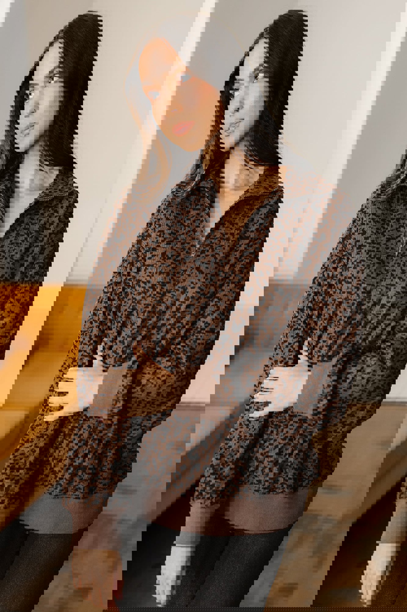 Leopard Corduroy Quarter-Zip Sweatshirt