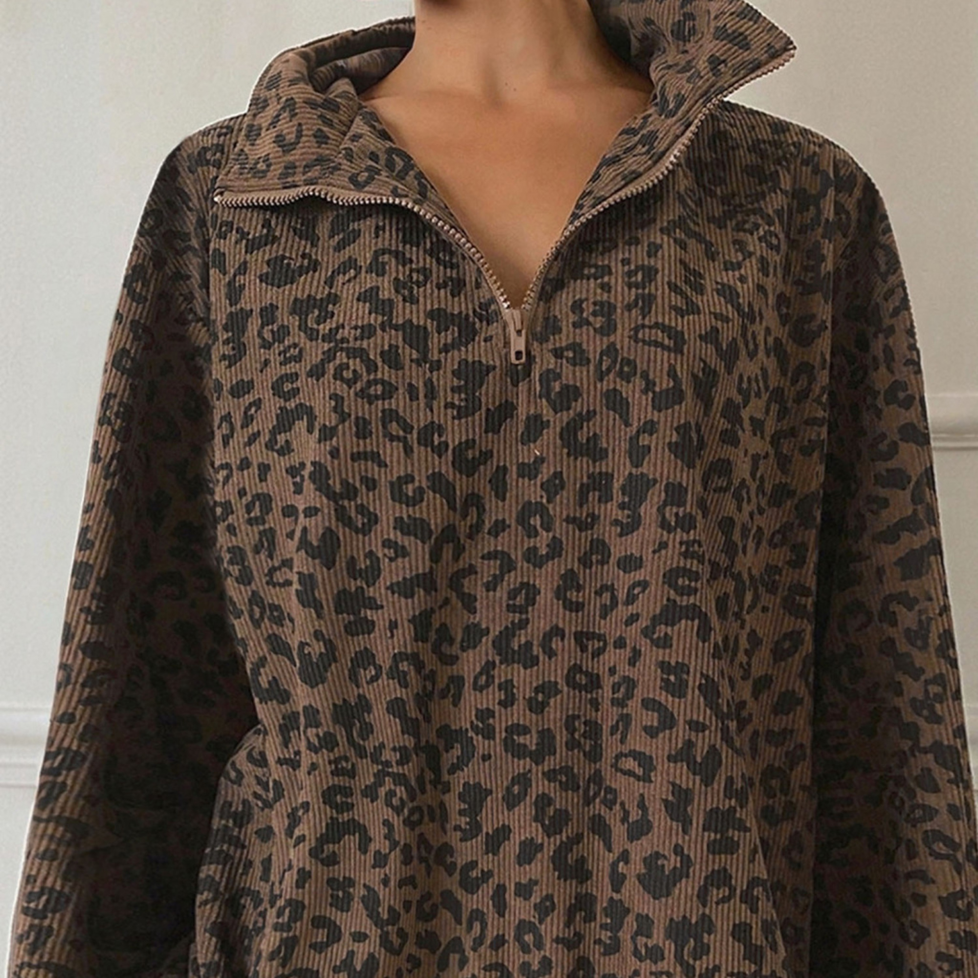 HIDDEN GEMS | Leopard Corduroy Quarter-Zip Sweatshirt