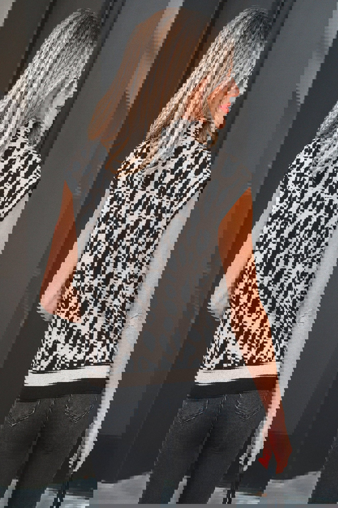 Make a statement with this eye-catching leopard print sweater that brings instant personality to your wardrobe. The cozy high neckline keeps things sophisticated while the short sleeves give you maximum layering flexibility—perfect for those in-between weather days. Crafted from a dreamy stretch knit that hugs you just right, this piece is all about looking fabulous without sacrificing comfort. Whether you're dressing it up or keeping it casual, this sweater is your ticket to effortless cool. Viscose/Polyester/Poly