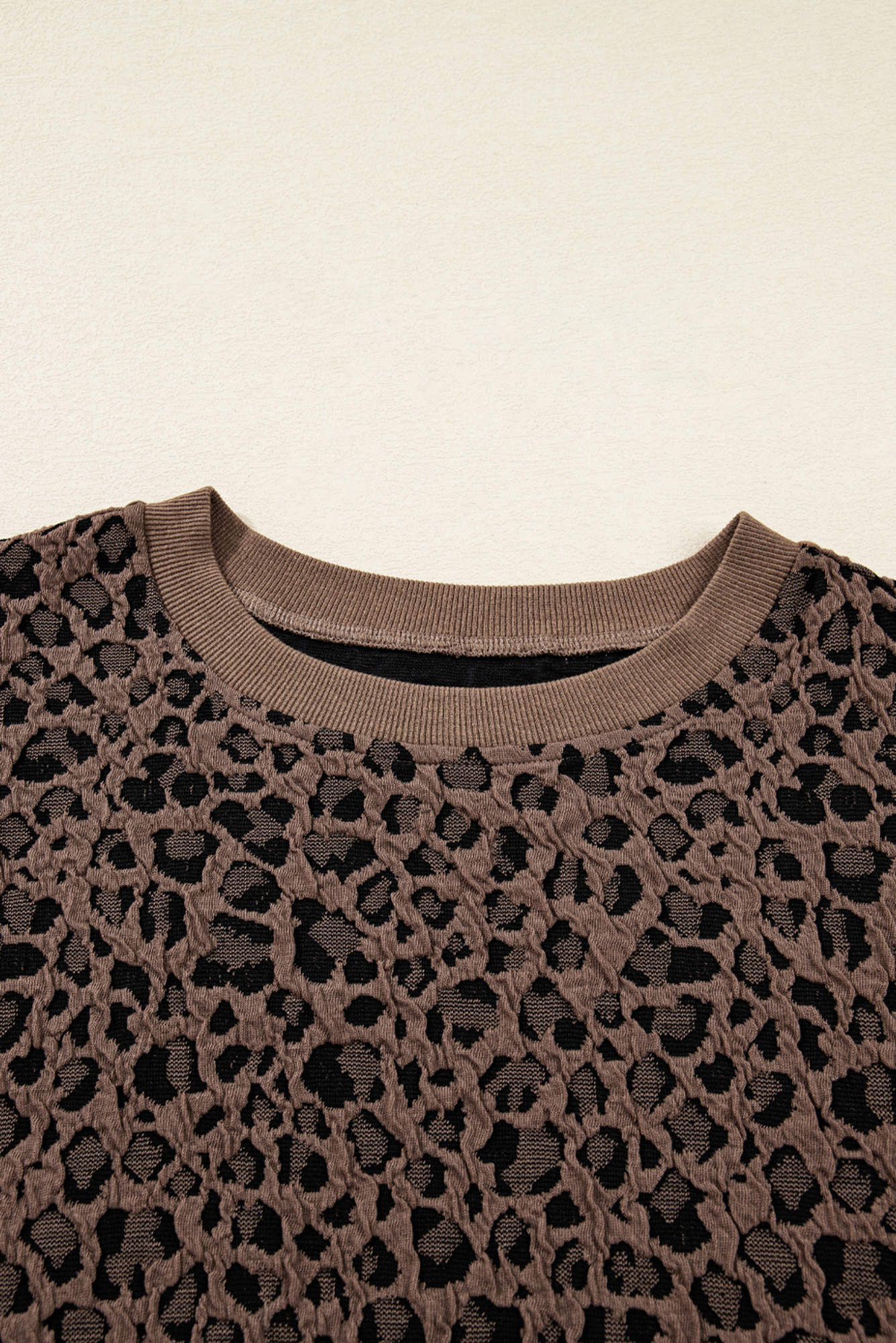 HIDDEN GEMS | Leopard Textured Long Sleeve Top