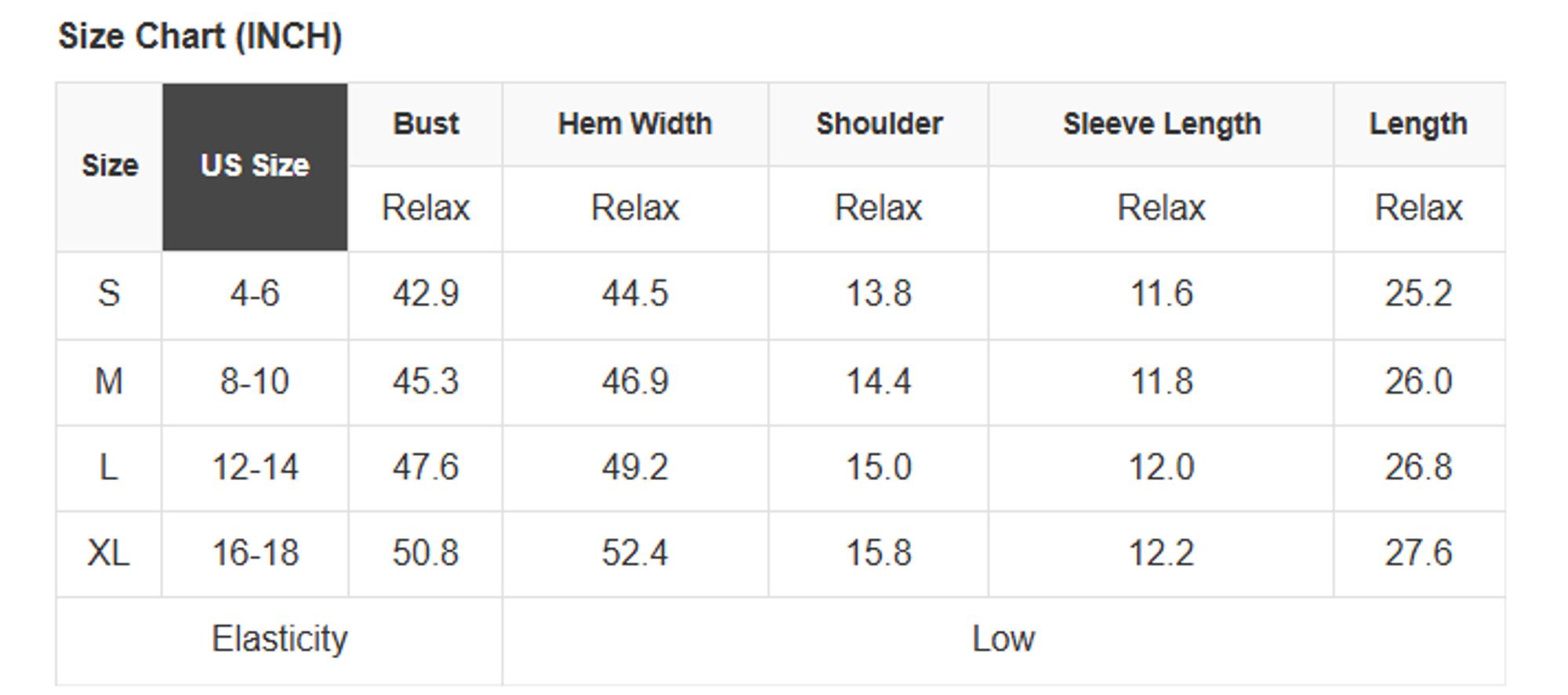 Size Info: See size chart for approximate measurements