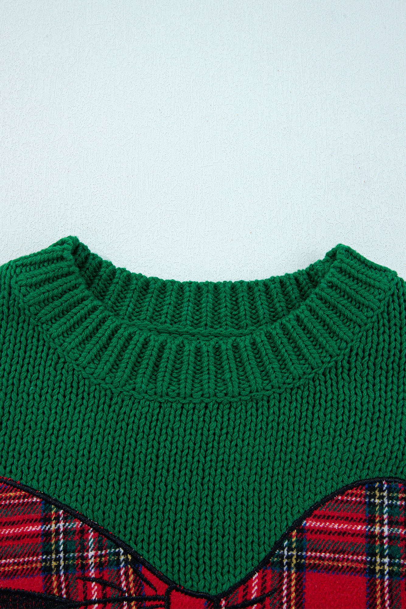 HIDDEN GEMS | Christmas Plaid Bow Drop Shoulder Sweater