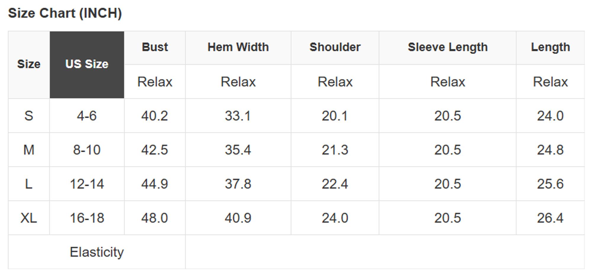 Size Info: See size chart for approximate measurements.