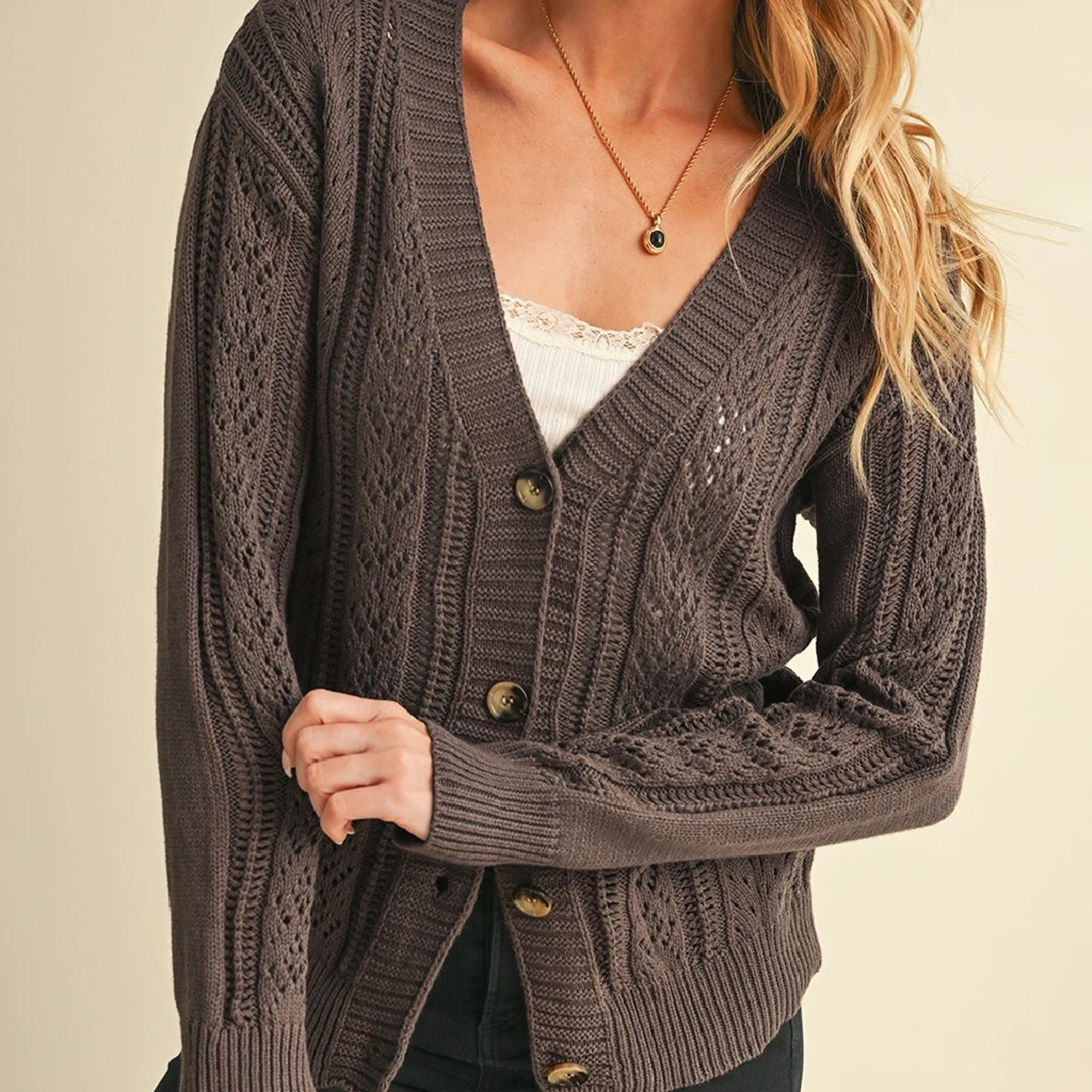 HIDDEN GEMS | Pointelle Knit Button Front Cardigan