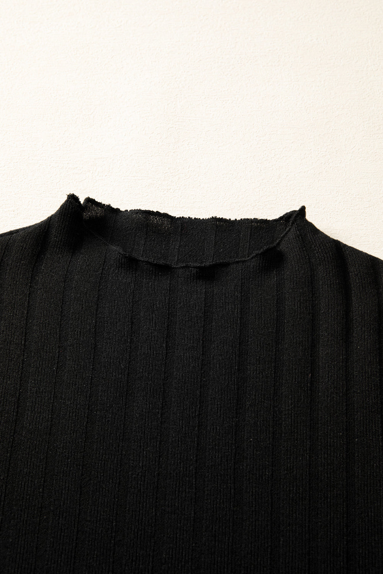 HIDDEN GEMS | Ribbed Knit Patchwork Long Sleeve Dress