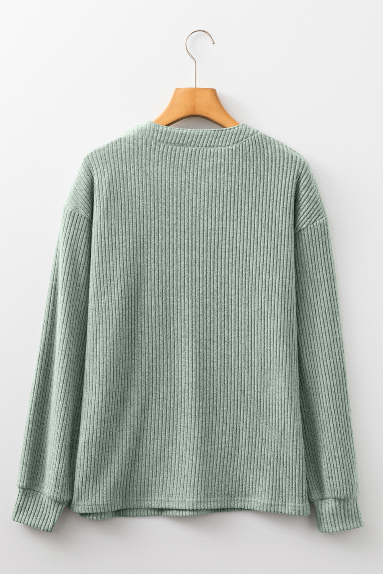 HIDDEN GEMS | Solid Ribbed Knit Drop Shoulder Henley Top