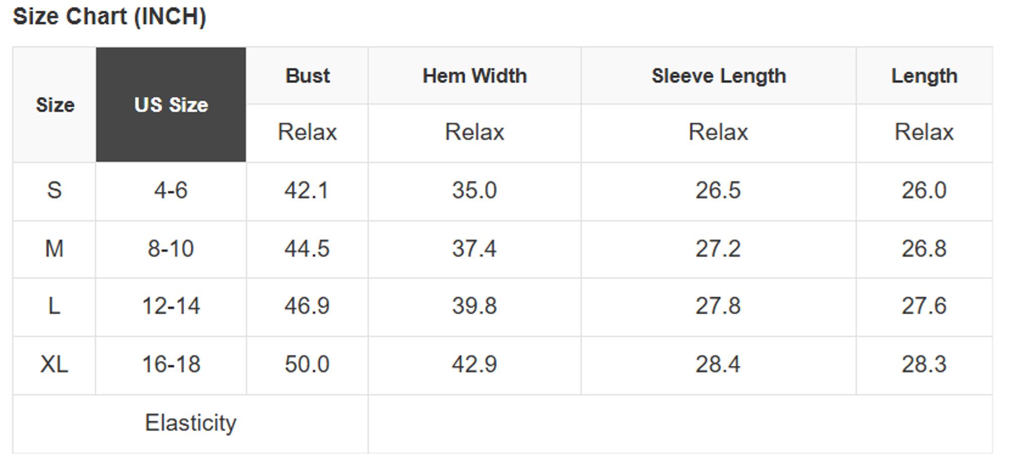 Size Info: See size chart for approximate measurements