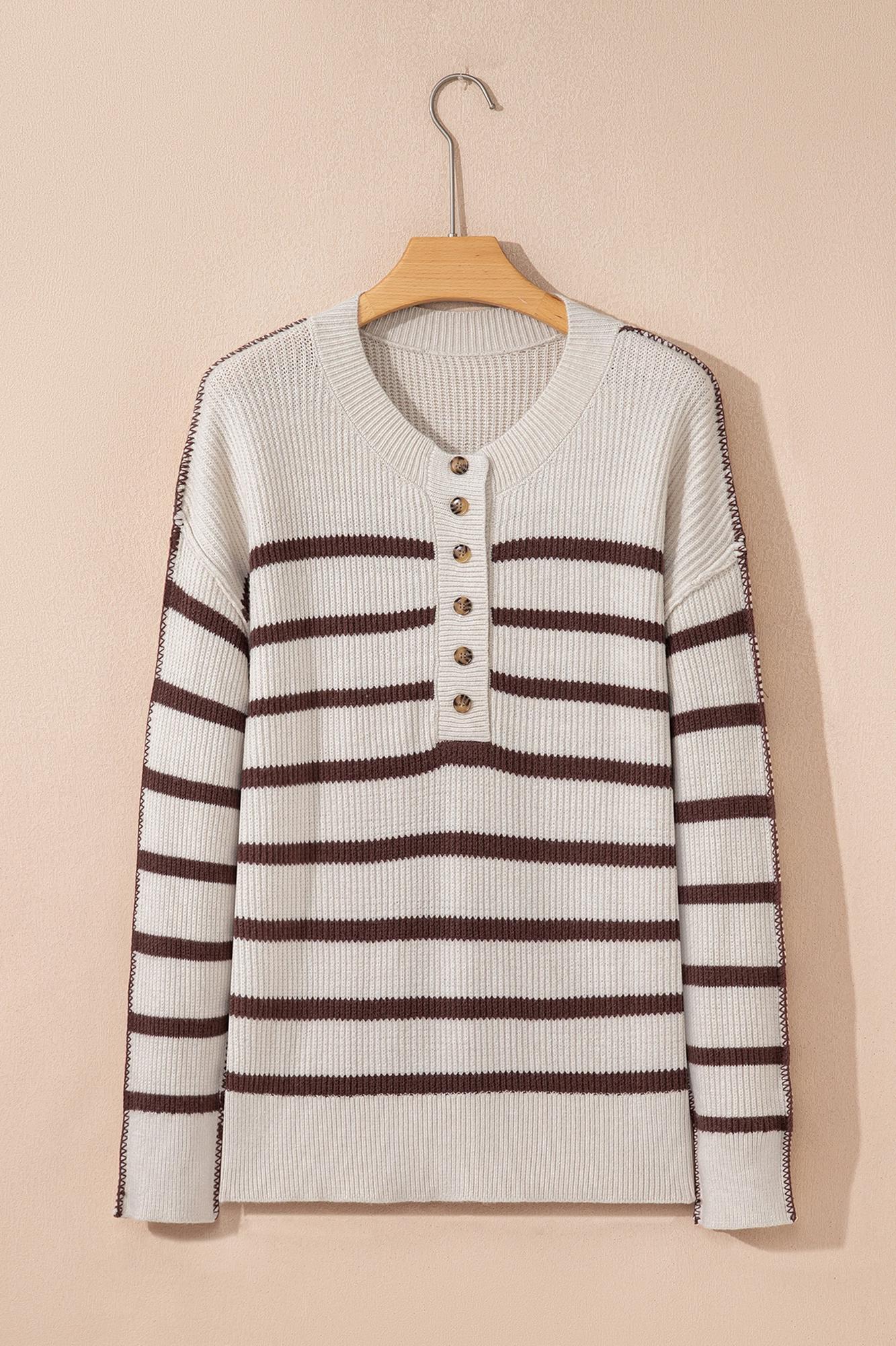 HIDDEN GEMS | Stripe Ribbed Henley Slouchy Sweater