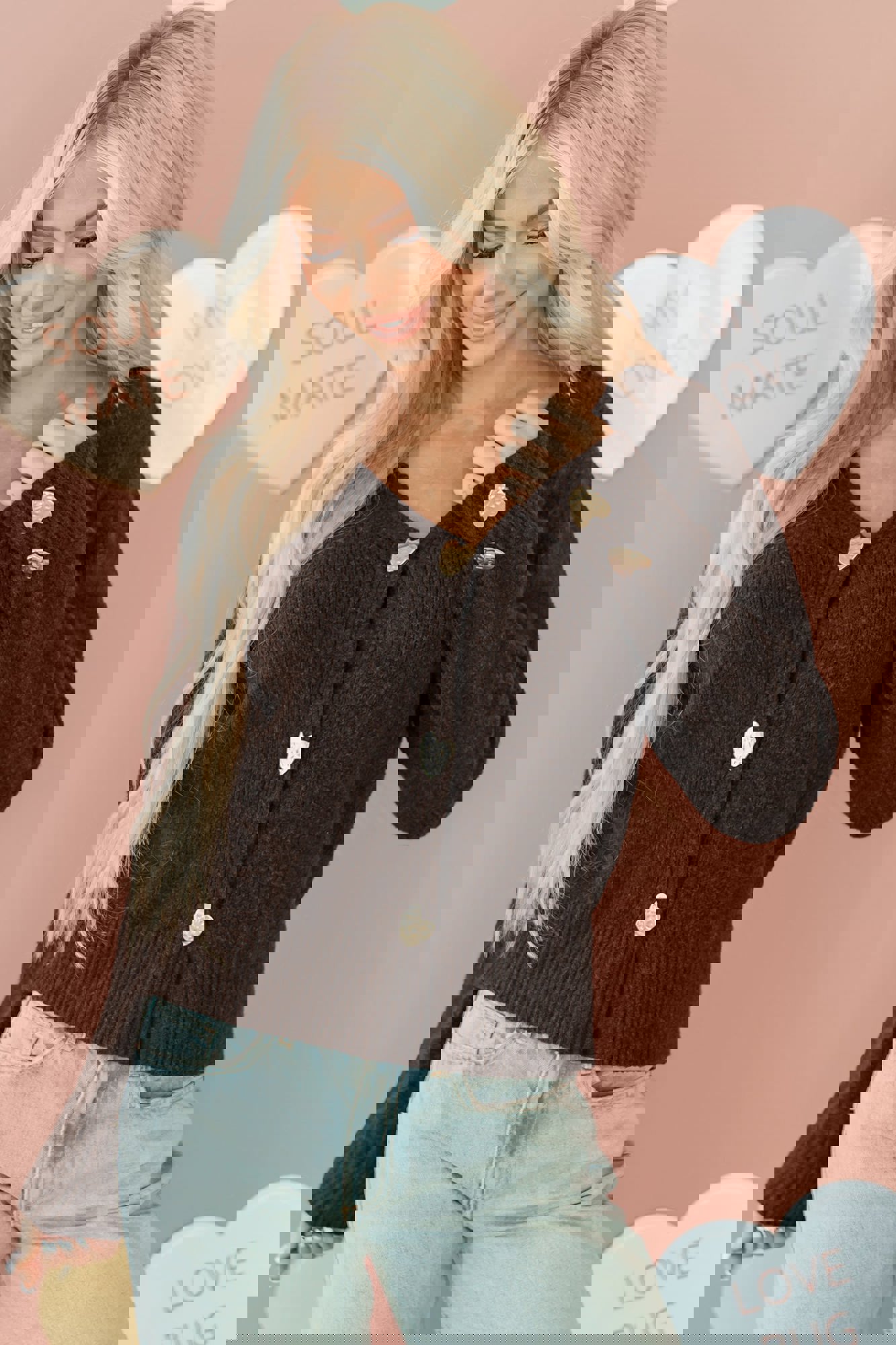 HIDDEN GEMS | Valentine Heart Metal Buttoned V-Neck Cardigan
