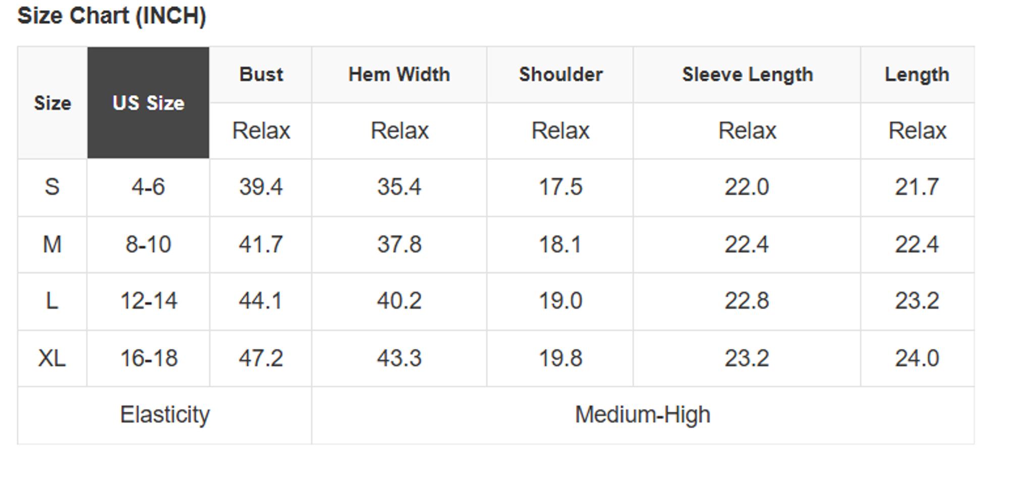 Size Info: See size chart for approximate measurements.
