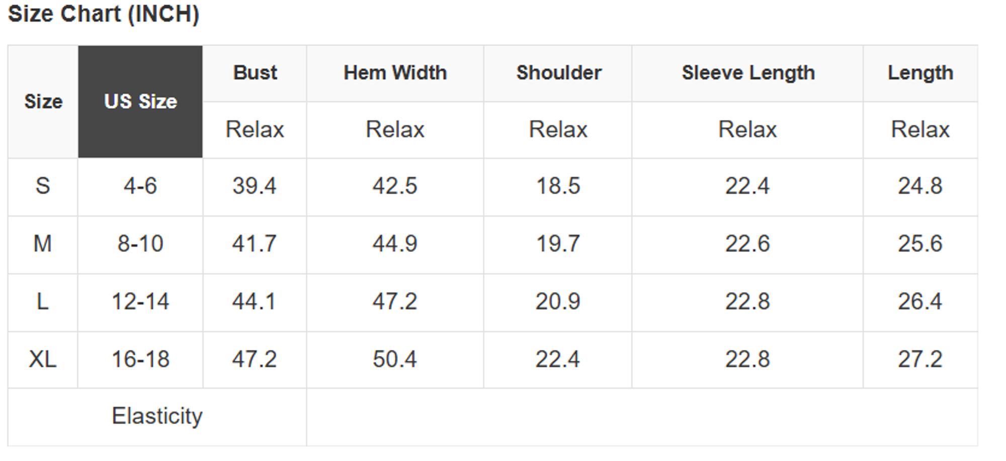 Size Info: See size chart for approximate measurements.